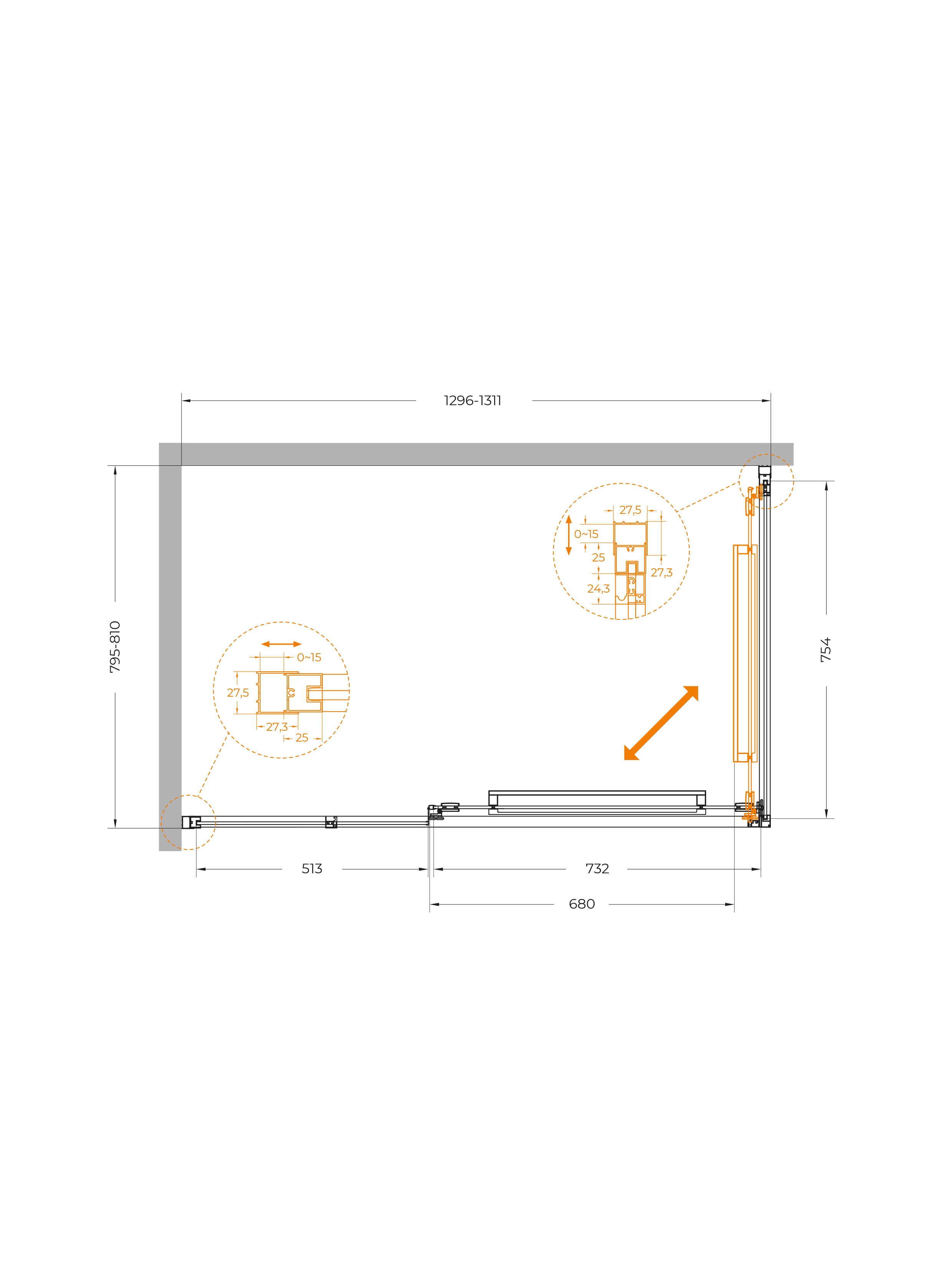 Описание Душевое ограждение Cezares LUX-AH-FS-11-130/80-C-CR