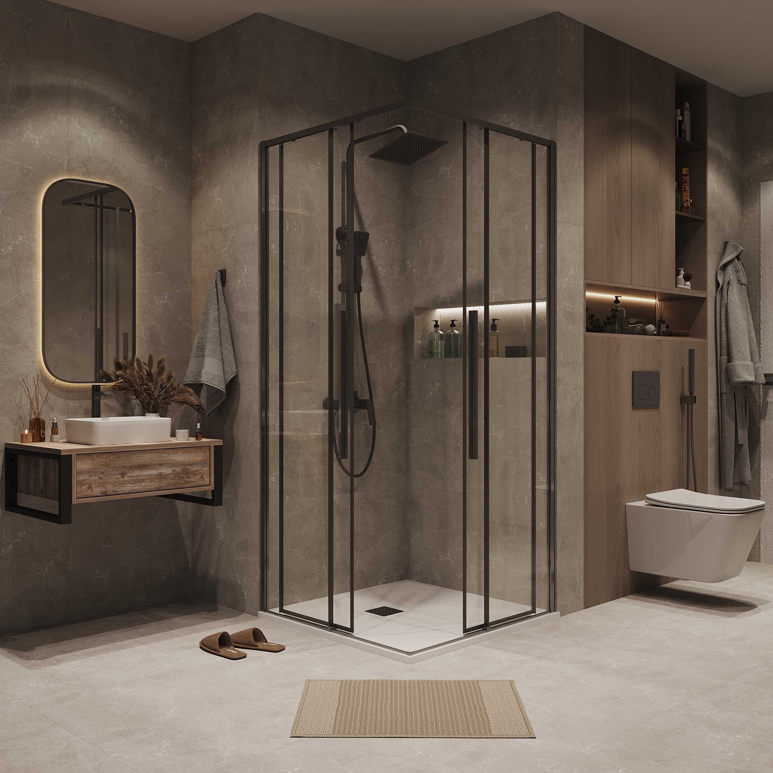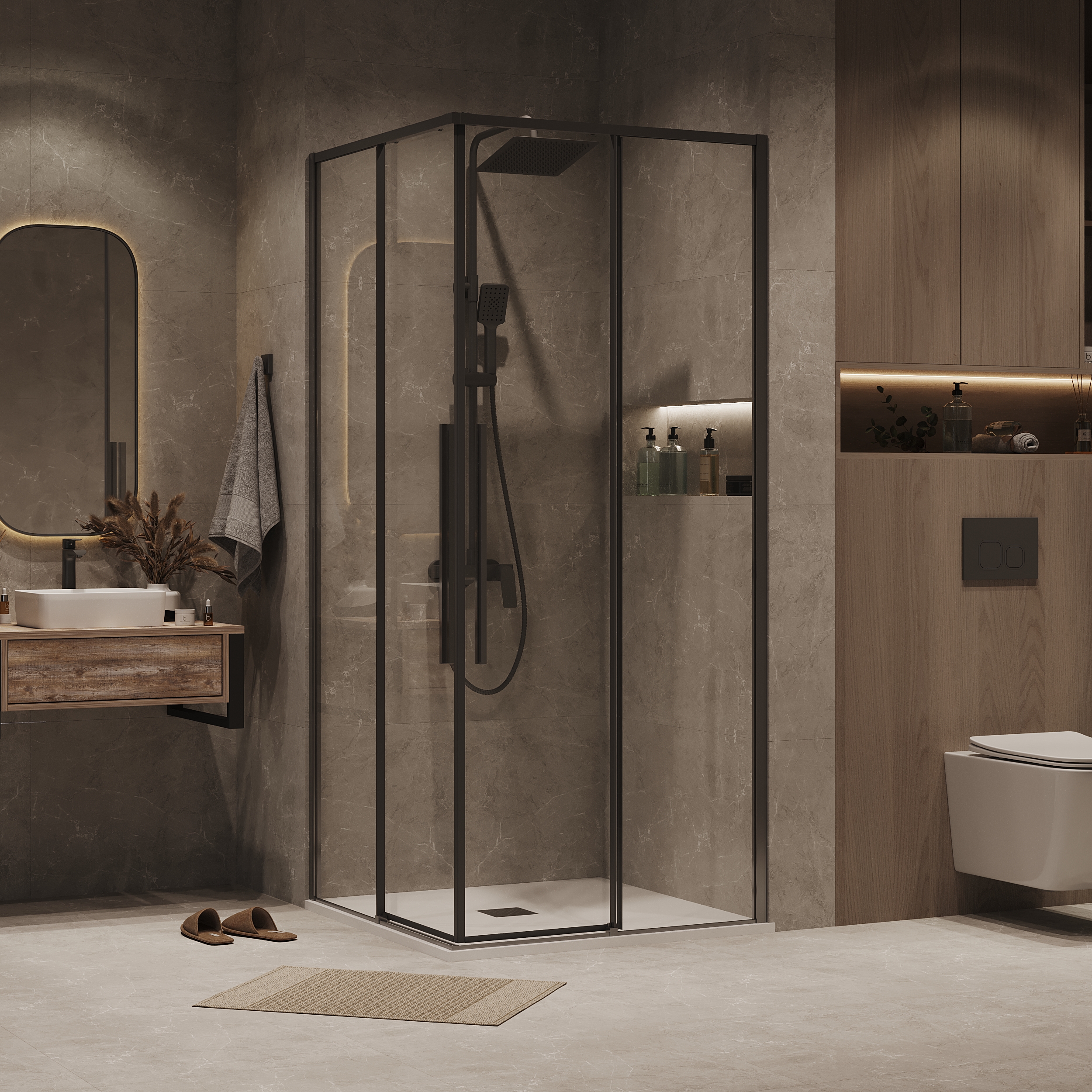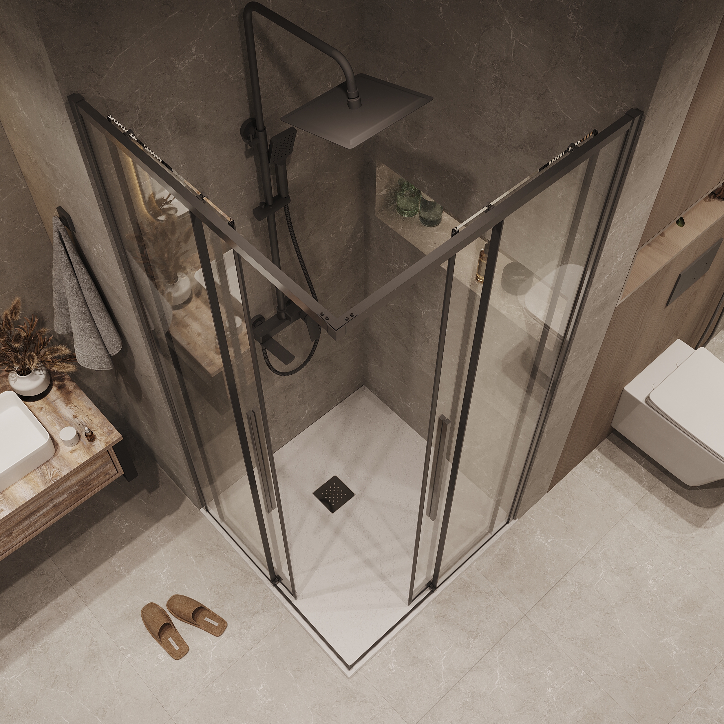 Душевое ограждение Grossman Galaxy 100х100 см 300.K33.01.1010.42.00, оружейная сталь/прозрачное