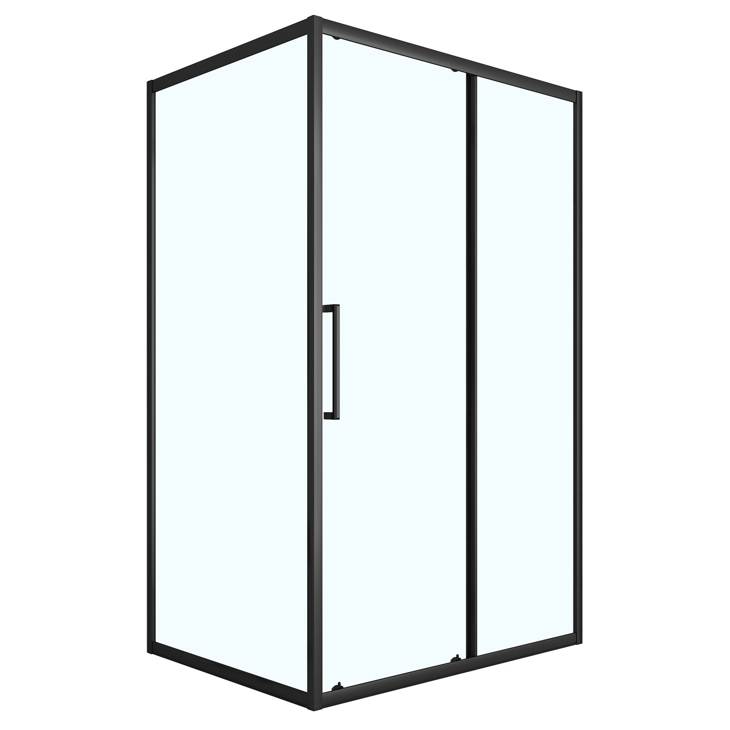 Изготовлено из закаленного прозрачного стекла толщиной 6 мм, обеспечивающего высокую прочность и безопасность в использовании. Алюминиевый профиль выполнен в черном матовом цвете, придавая изделию современный и элегантный вид, который гармонично впишется в интерьер любой ванной комнаты.
