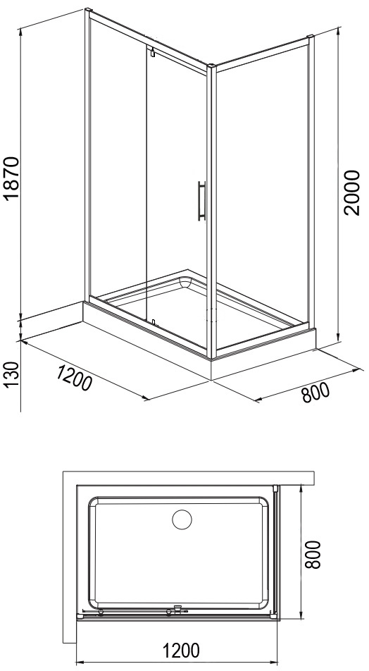 Душевое ограждение Loranto 1200х800х2000 мм с низким поддоном 13 см и сифоном, профиль - хром, стекло - прозрачное 6 мм. Дверь 120 см, душевая стенка 80 см.