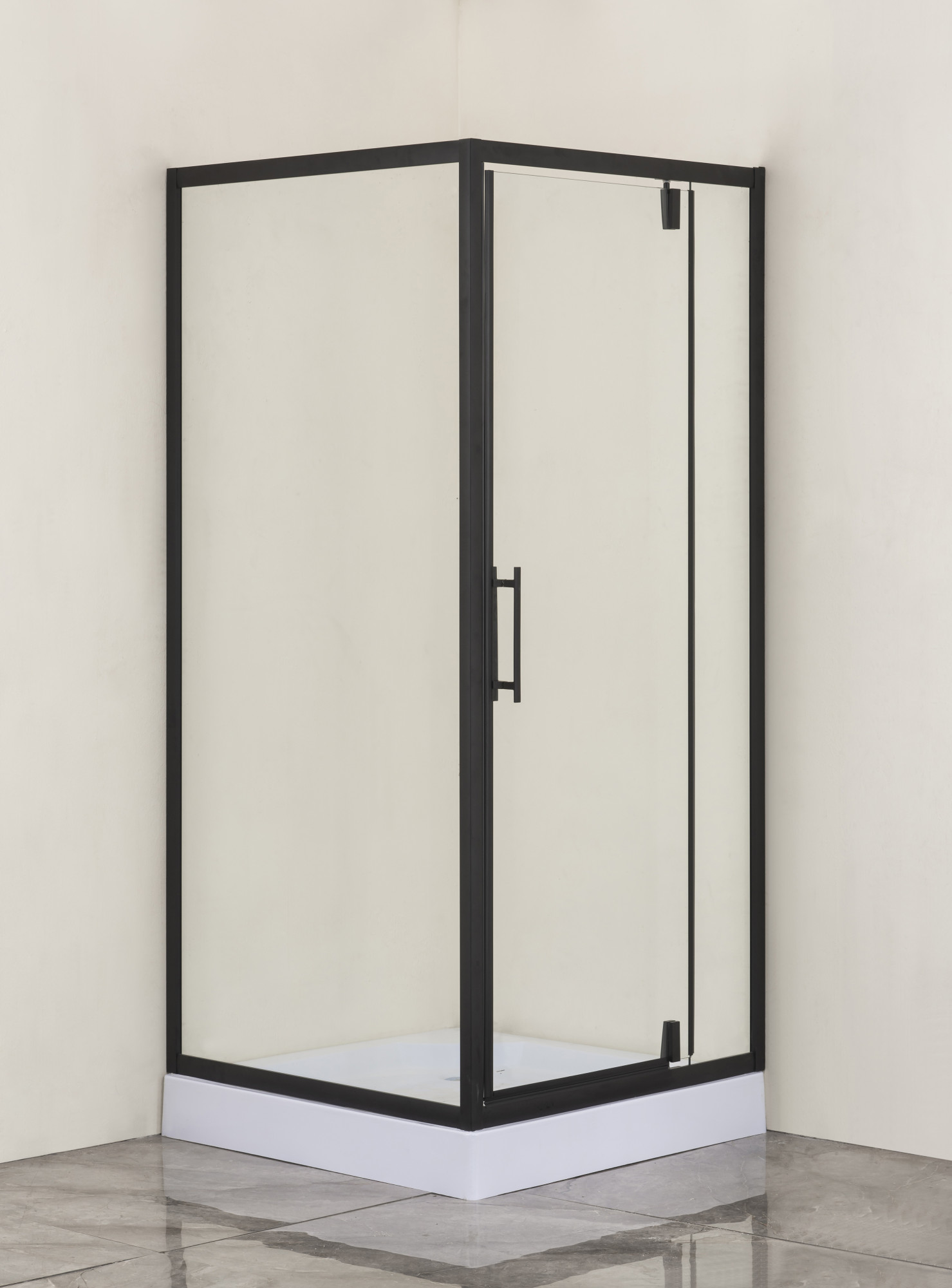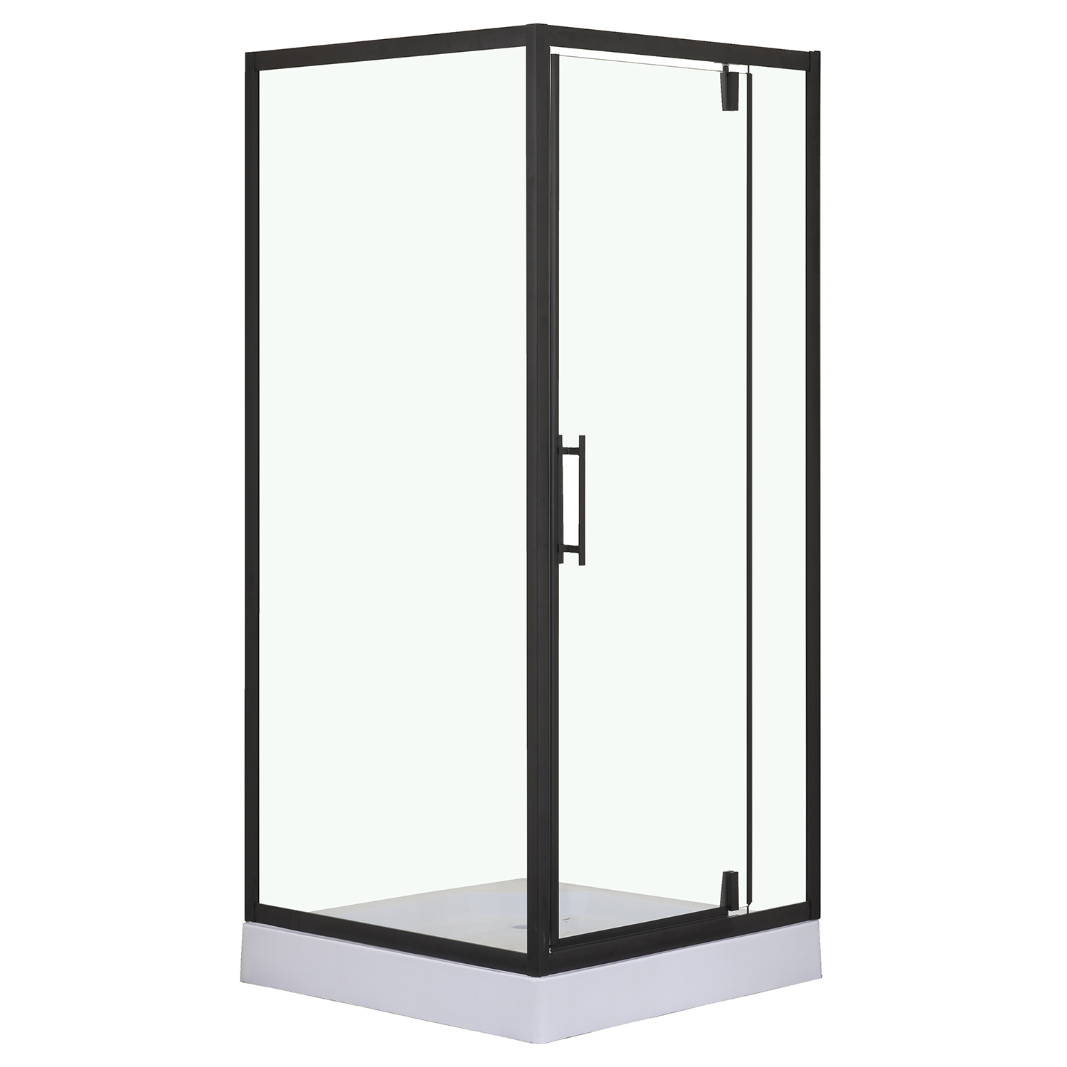 Душевое ограждение Loranto 900х900х2000 мм с низким поддоном 13 см и сифоном, профиль - черный, стекло - прозрачное 6 мм.