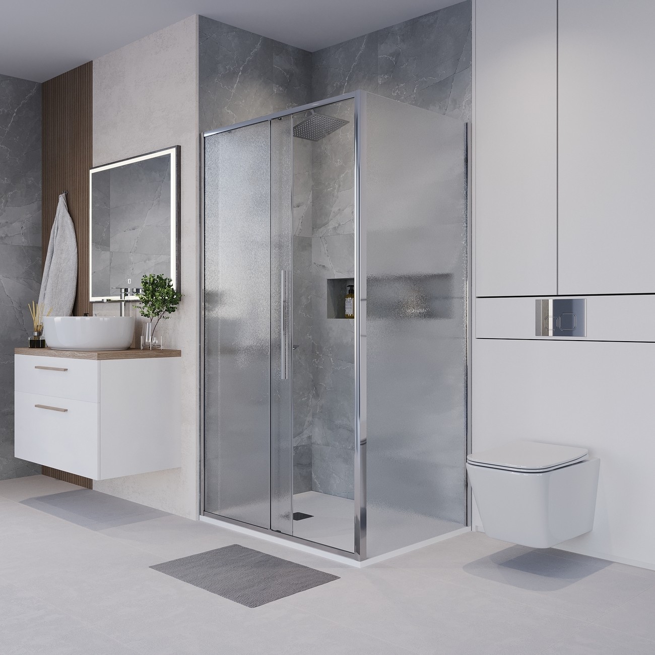Душевое ограждение Niagara Nova NG-65-13CH-CH80-34 1300х800х1950 мм, левосторонняя, профиль - хром, стекло - шиншилла, 5 мм, ширина входа 555 мм. Дверь 130 см, душевая стенка 80 см. Душевой поддон приобретается отдельно.
