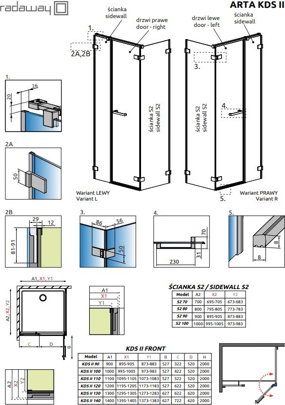 Душевое ограждение Radaway Arta KDS II 1200*1000 мм, состоящее из двери W 528 L, неподвижной стенки 615 и боковой стенки S2 1000 мм. Профиль - хром, стекло - прозрачное 8 мм. Душевое ограждение доступно в правом и левом вариантах (на фото правый вариант). Поддон приобретается отдельно.