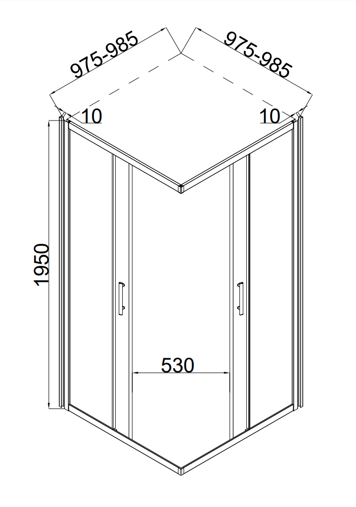 Душевое ограждение Taliente TA-10102-1CB, размер 1000х1000х1950 мм, профиль чёрный, стекло прозрачное 6 мм, ширина входа 530 мм. Габариты регулировки (975-985)х(975-985)х1950 мм. Поддон приобретается отдельно.