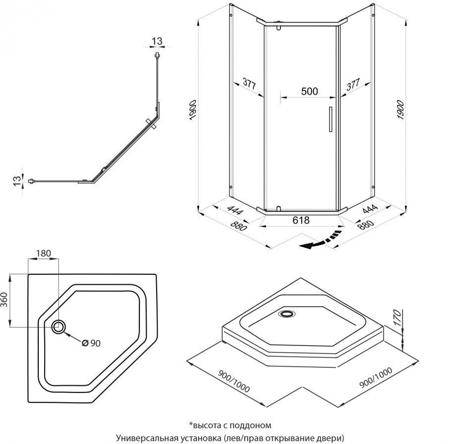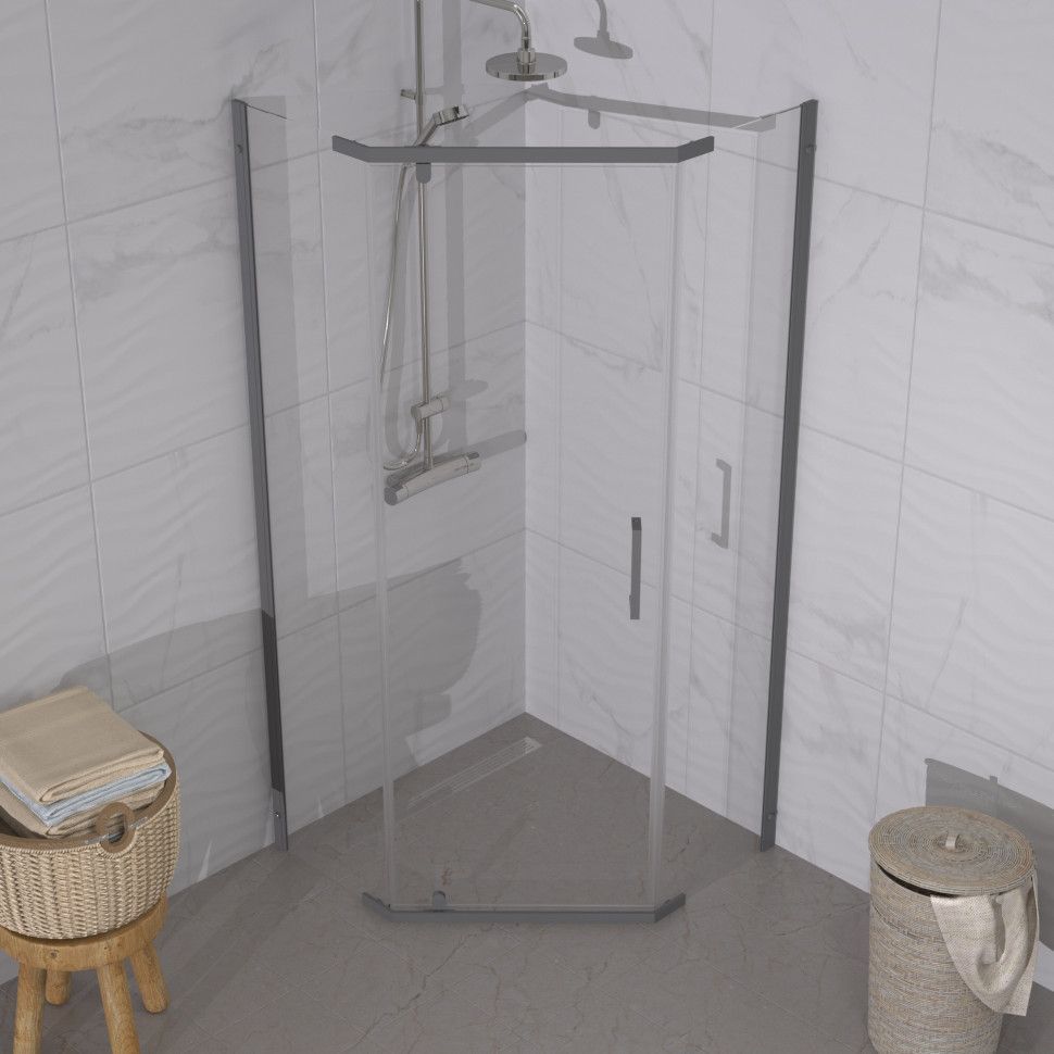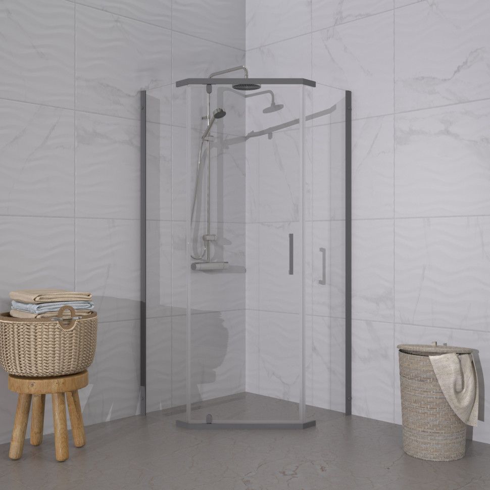 Душевое ограждение Triton Дека, размер 900x900x1900 мм, профиль графит, стекло прозрачное. Ширина входа 500 мм.