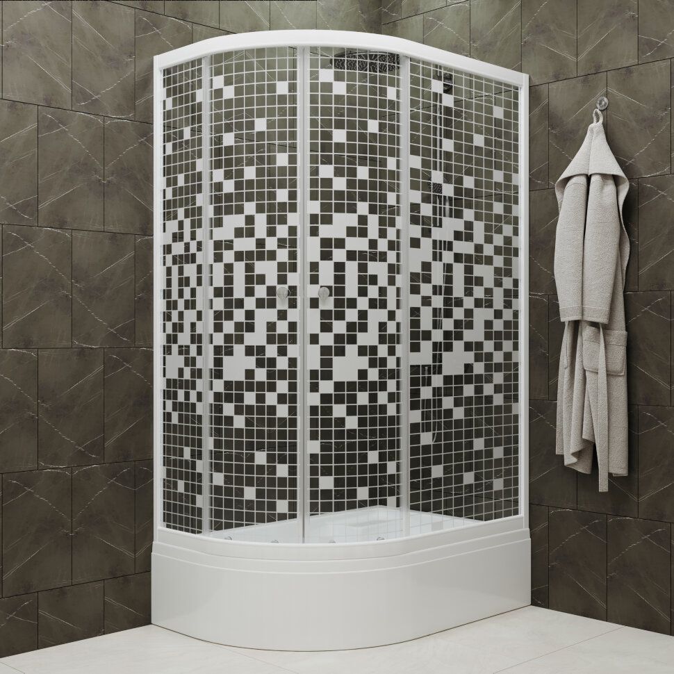 Душевое ограждение Triton Коралл 120x80 см R Щ0000061783, белый/мозаика