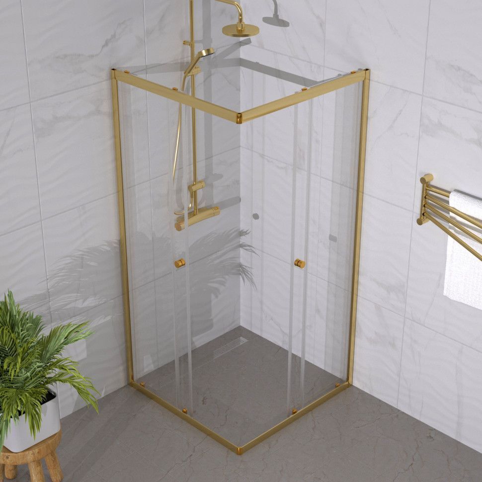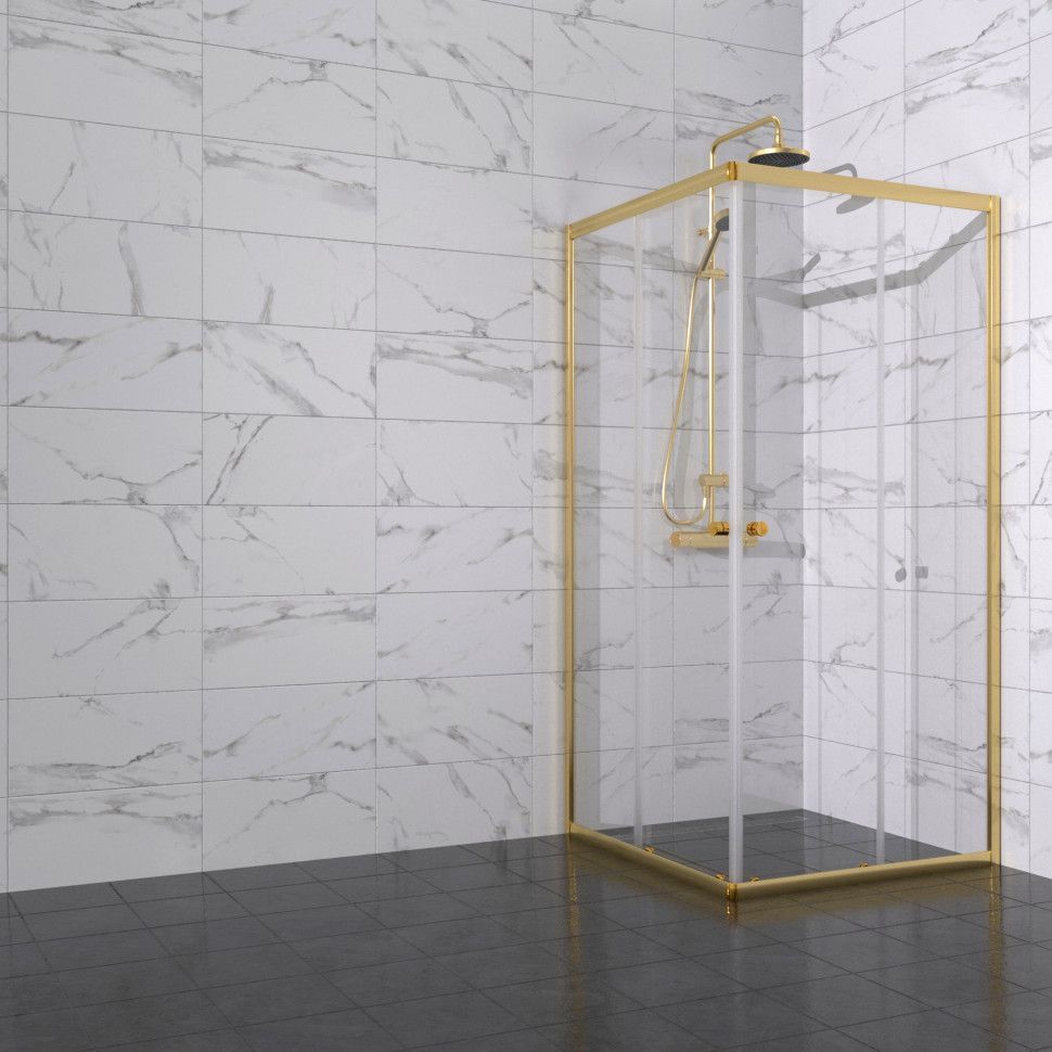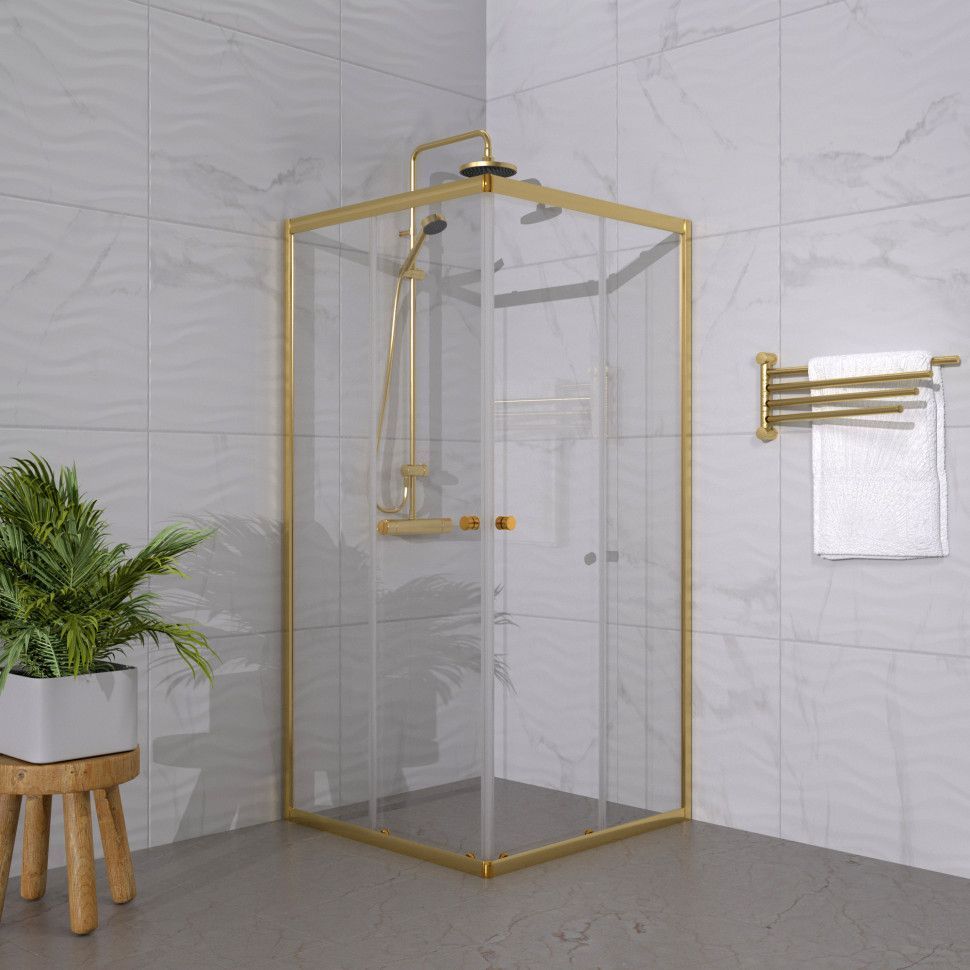 Душевое ограждение Triton Вента, размер 900x900x1850 мм, профиль золото, стекло прозрачное. Ширина входа 500 мм.