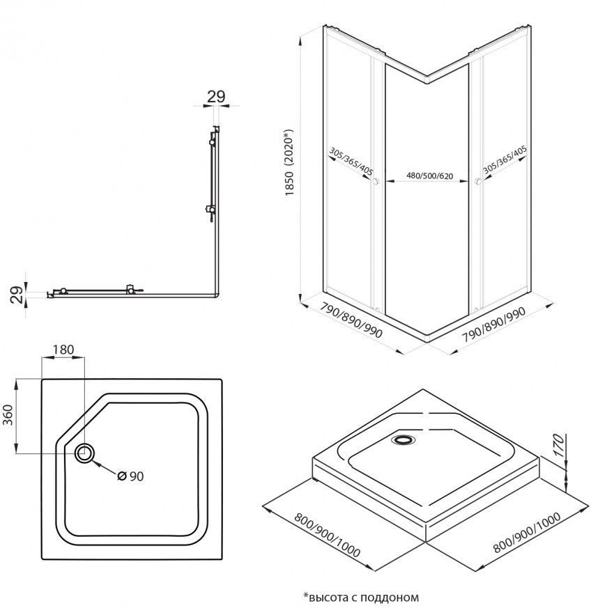Душевое ограждение Triton Вента 90x90 см Щ0000076258, графит/прозрачное