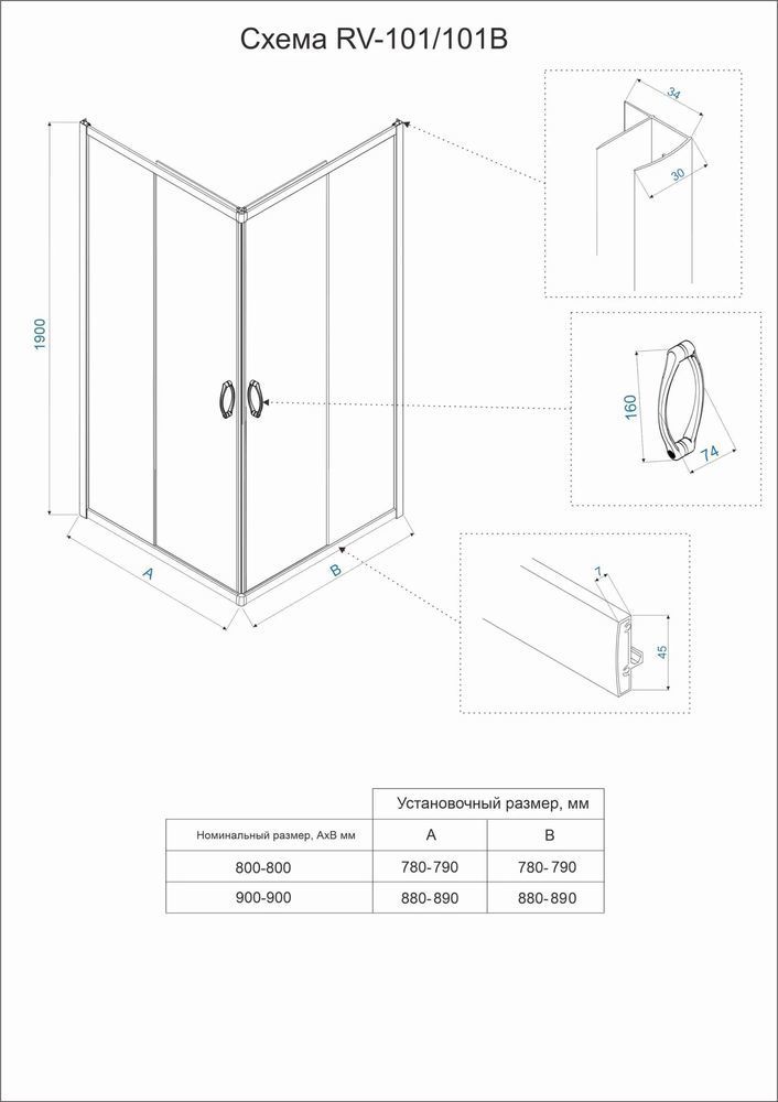 Характеристики Душевое ограждение Veconi (RV101B-80-01-C5)