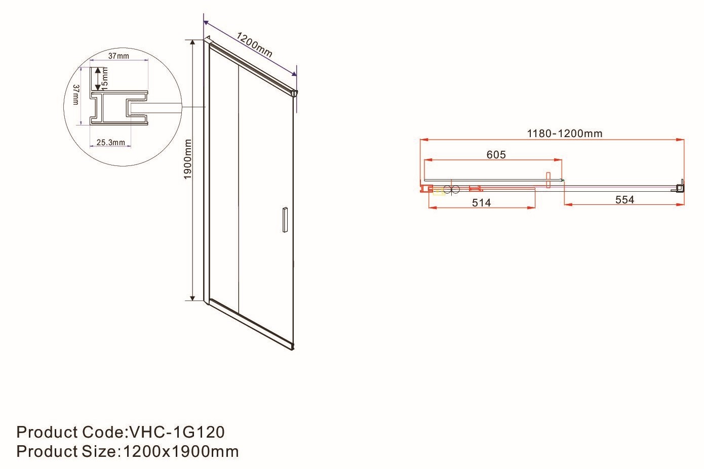 Описание Душевое ограждение Vincea VSS-1G9012CLBN