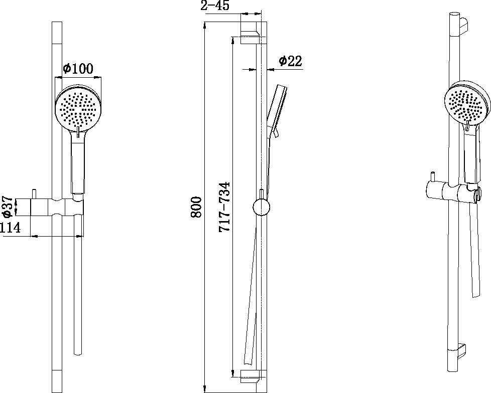 - Штанга: Нерж.Сталь (фиксаторы к стене - ABS)