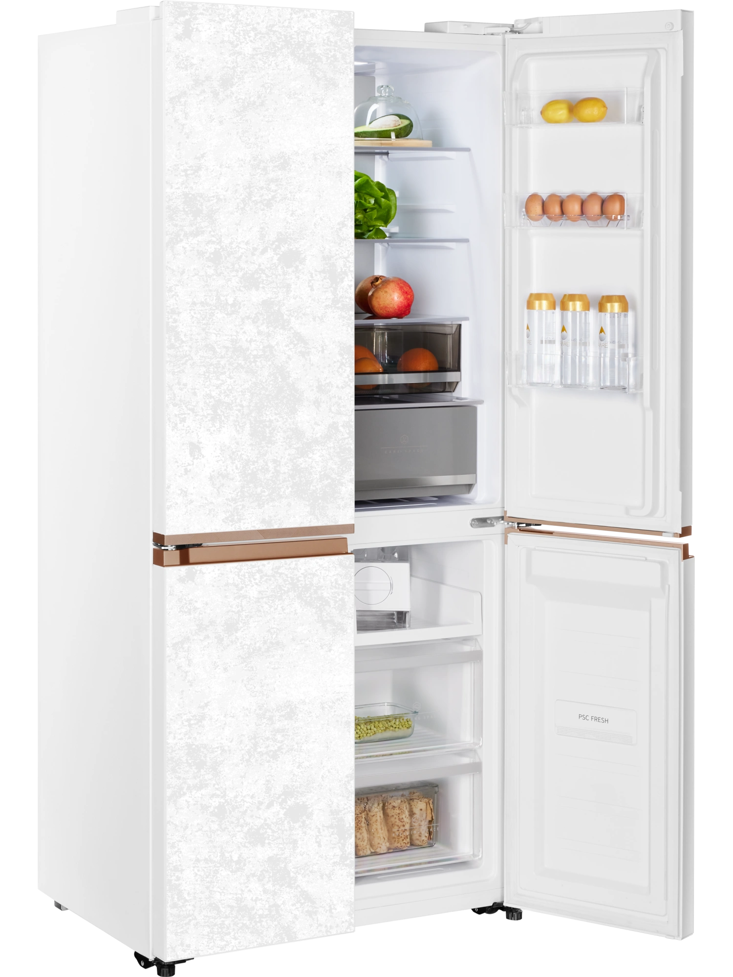 - Четырехдверный инверторный холодильник HIBERG i-RFQ 630G WS – изысканный представитель бренда. Эффектный фасад из закаленного стекла в белом цвете с эффектом мрамора станет украшением любого кухонного и столового интерьера.