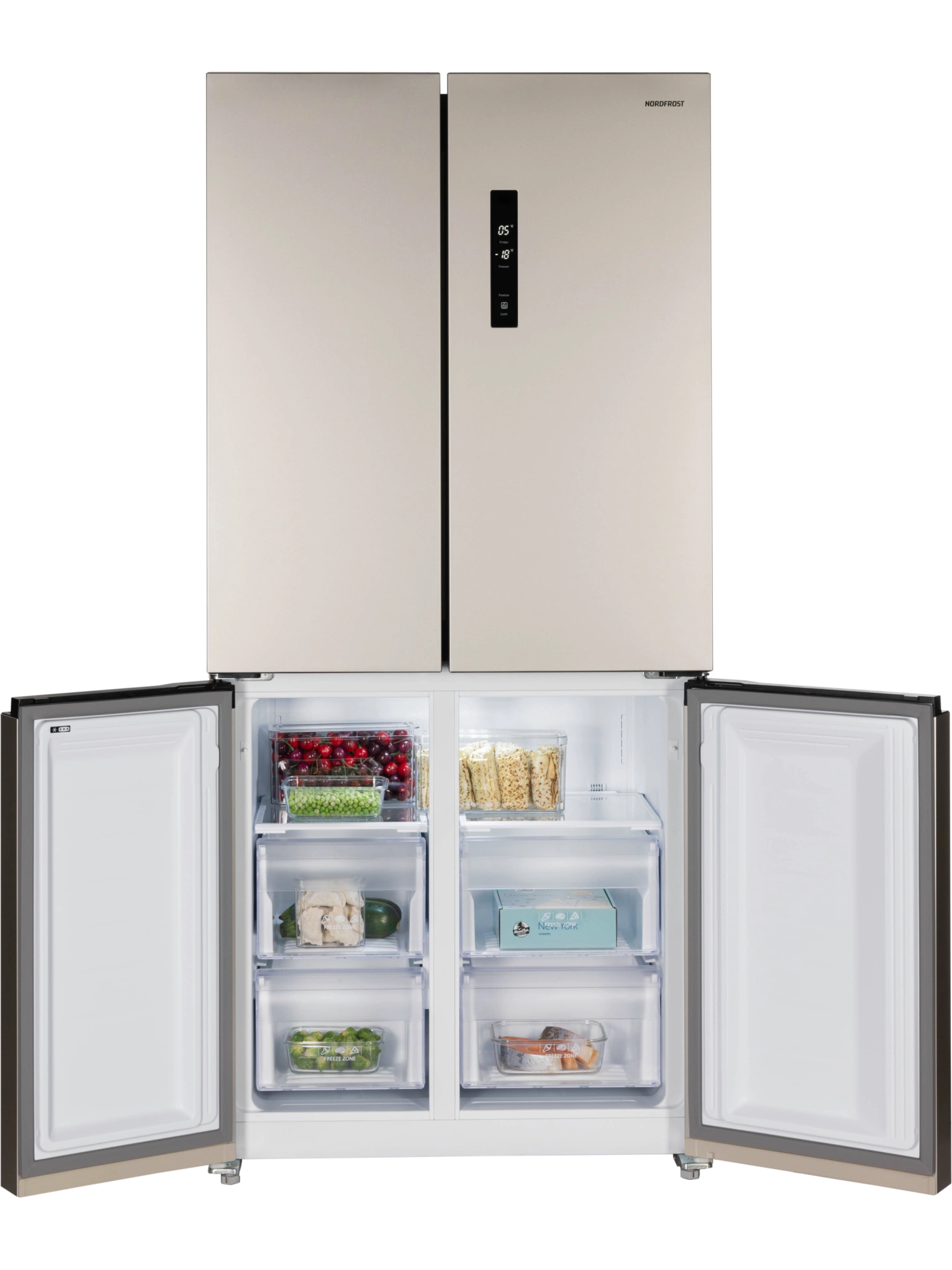 - Отдельностоящий четырехдверный холодильник NORDFROST RFQ 500 NFH выгодно отличается стильным исполнением и большим объемом 482 литра. Вместительный представитель бренда справится с хранением запаса продуктов для большой семьи. Элегантный современный дизайн и незаурядное цветовое решение оттенка шампань позволят холодильнику занять достойное место в кухонном интерьере квартиры и в столовой зоне загородного дома.