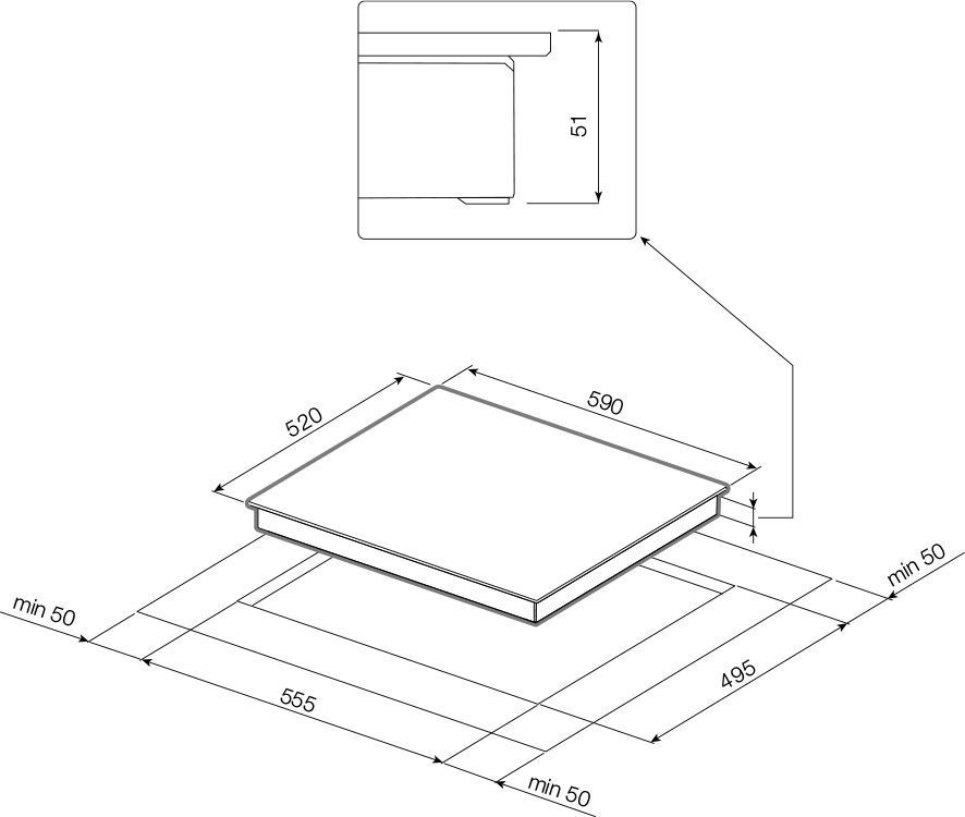 - Размеры: Ш/В/Г= 590/51/520 мм