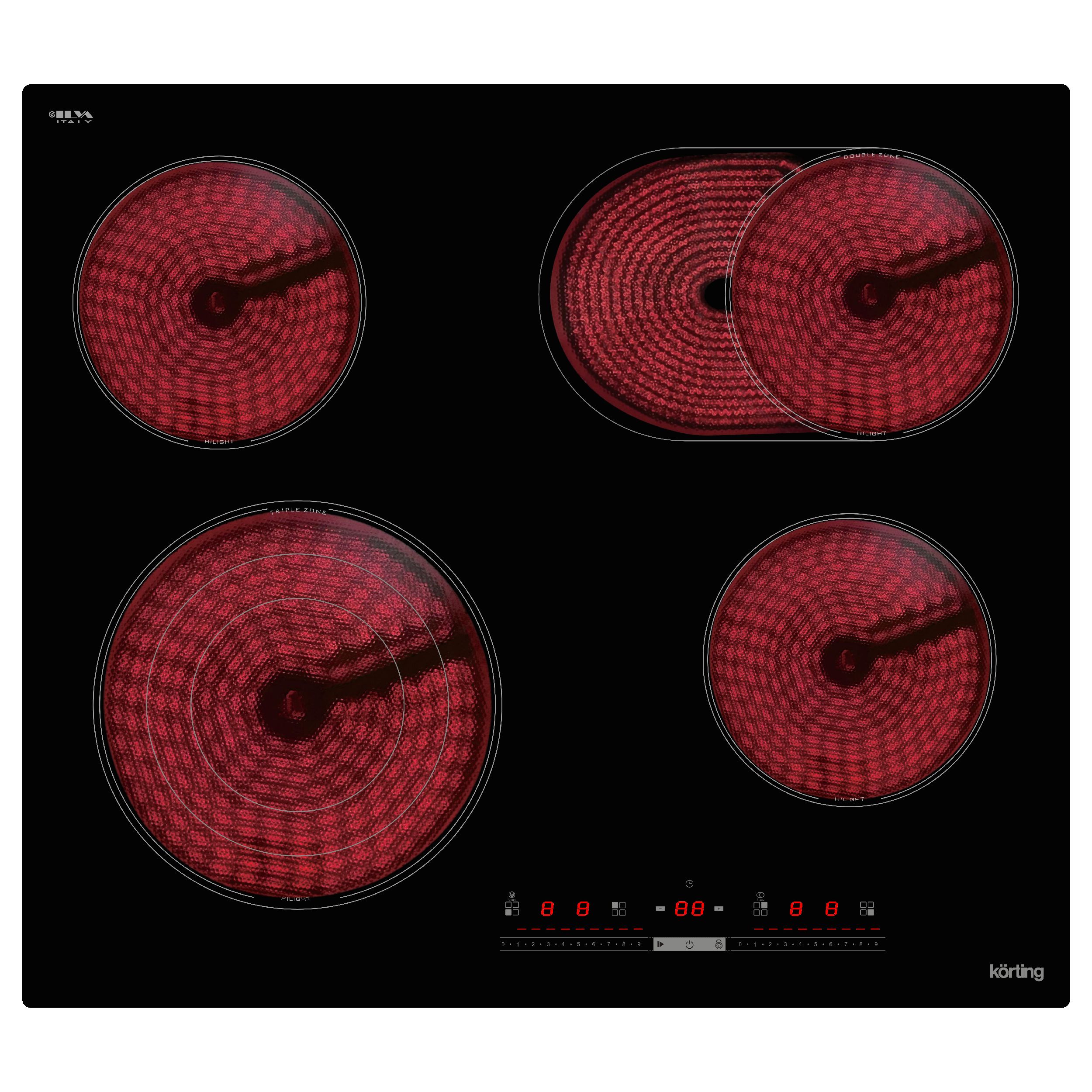 Встраиваемая электрическая варочная панель HK 63910 B шириной 60 см изготовлена из черной стеклокерамики. Модель оснащена четырьмя конфорками, включая специальную с двумя зонами расширения: тройной круглой и двойной овальной. Выбор различных диаметров зон нагрева позволяет использовать посуду разных форм и размеров. Сенсорное управление нового поколения "Slider Touch Control" обеспечивает легкость контроля процесса приготовления одним касанием. Электронный таймер позволяет установить необходимое время, а функция "Stop&Go" временно приостанавливает процесс работы, сохраняя настройки и переходя в режим поддержания тепла. Функция автоматического отключения гарантирует безопасность, если пользователь забыл выключить прибор самостоятельно. Индикатор остаточного тепла и блокировка управления также увеличивает уровень безопасности в процессе эксплуатации.