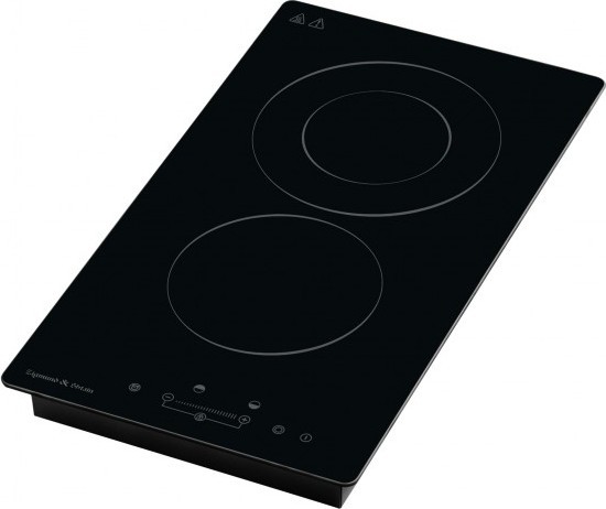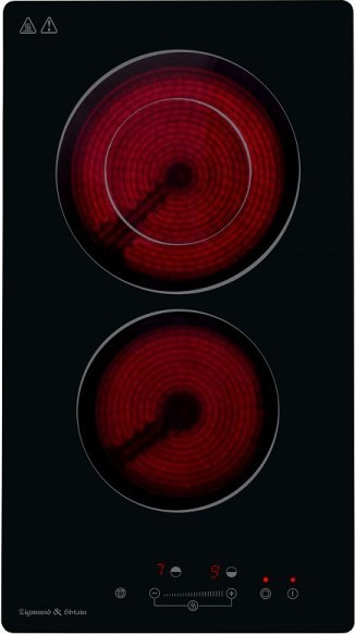 Независимая стеклокерамическая варочная панель Зигмунд Штайн CN 42.3 B черного цвета иметь 2 конфорок Hi-Light с мощностью:- 1 элемент: 165 мм, 1200 Вт, 1 элемент: 200 мм, 900/1800 Вт, Общая мощность: 3000 Вт.