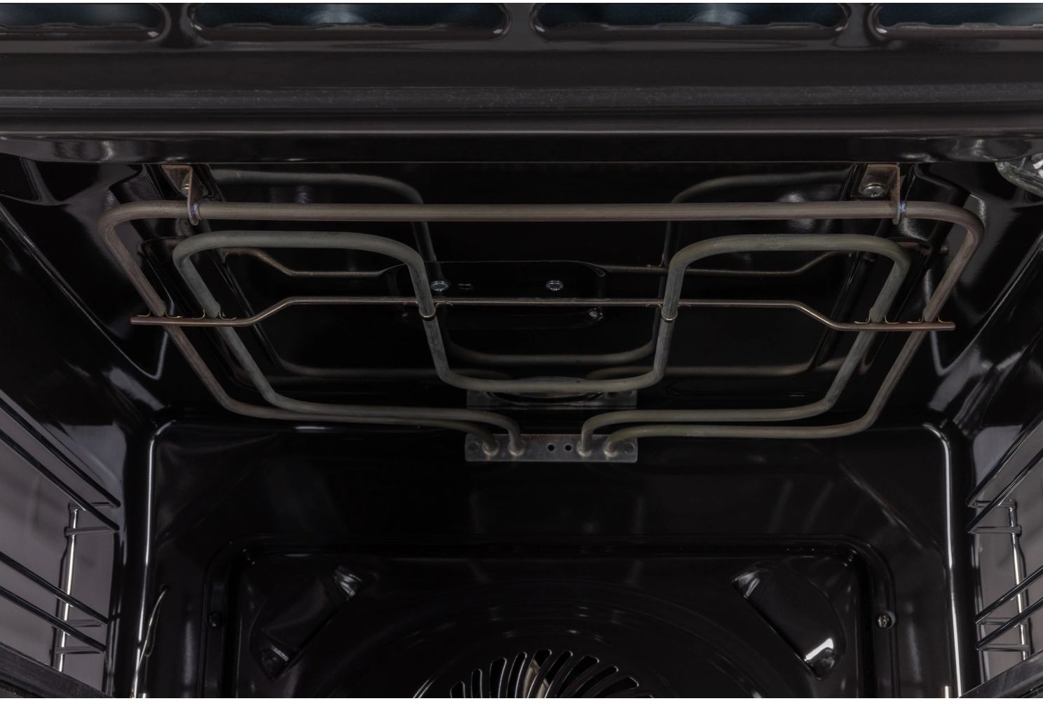 - Электрическая духовка с кольцевым нагревательным элементом и функцией конвекции обеспечивает циркуляцию горячего воздуха и равномерное распределение жара. Такая комбинация позволит приготовить сочные блюда из мяса, птицы, рыбу с хрустящей корочкой, пропечь лазанью или получить воздушную румяную выпечку.