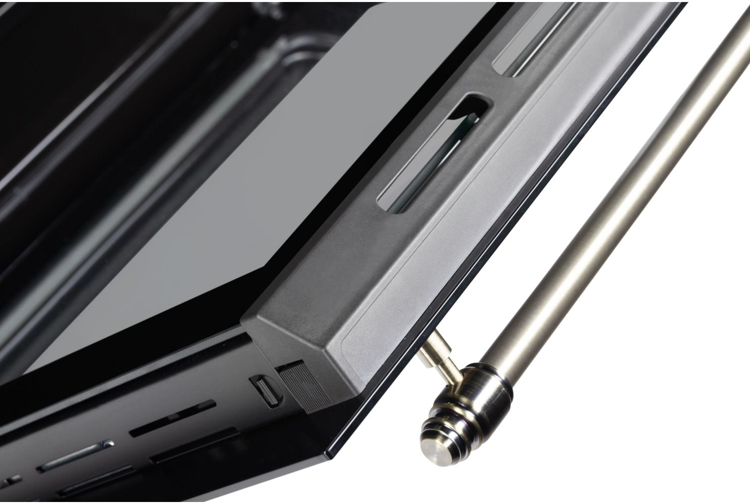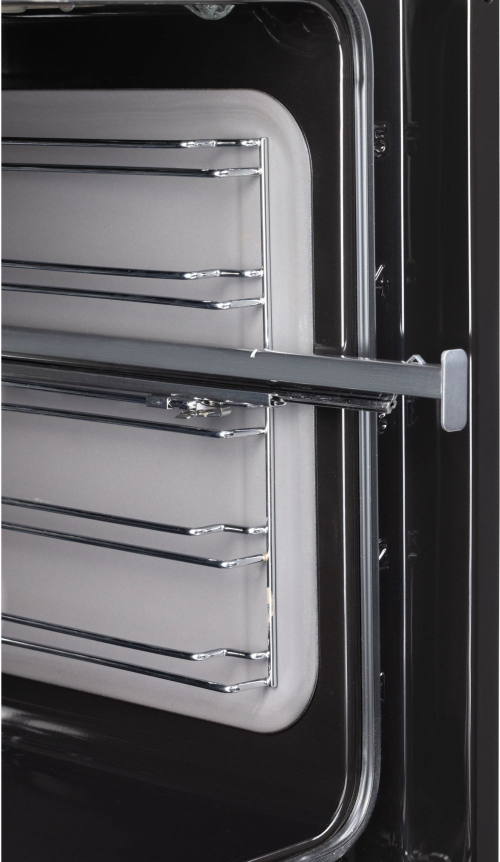 - Удобные телескопические направляющие с полным выдвижением для противней помогут контролировать готовность блюд, не придерживая их руками.