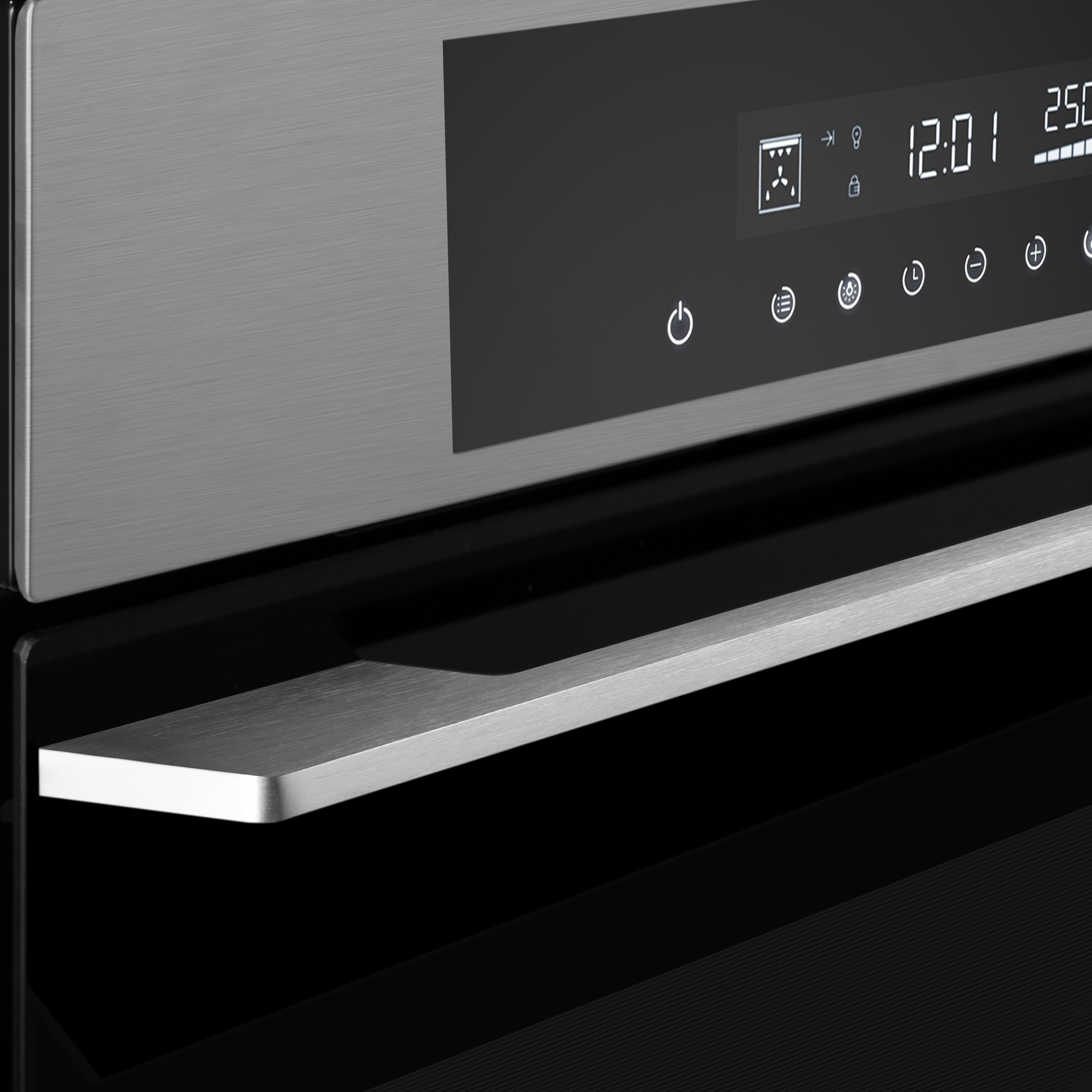 - Комплектация: стандартный противень, хромированная решетка, хромированные телескопических направляющие, хромированные направляющие