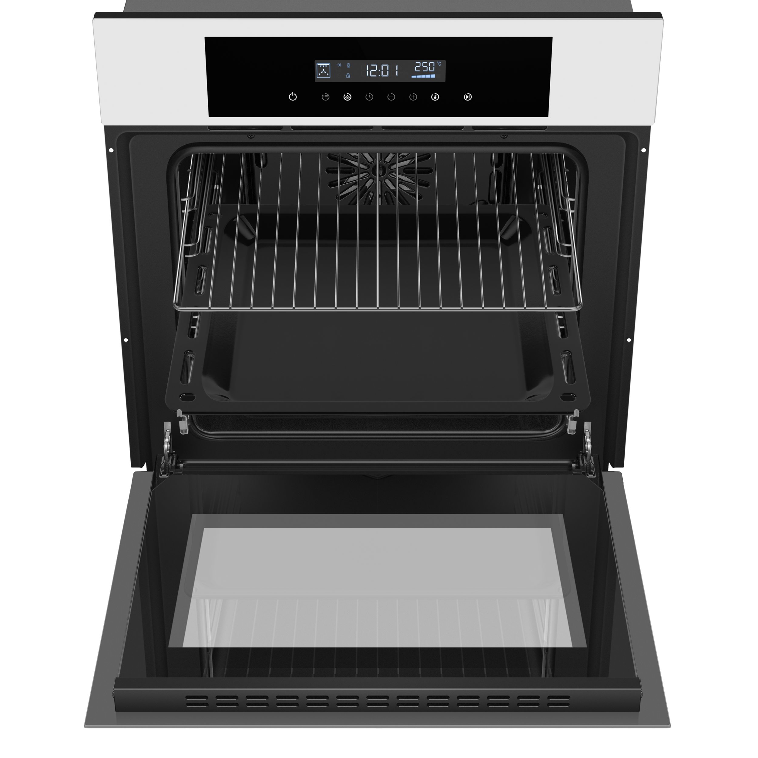 - Комплектация: Глубокий противень, хромированная решетка, хромированных телескопических направляющих, хромированные направляющие