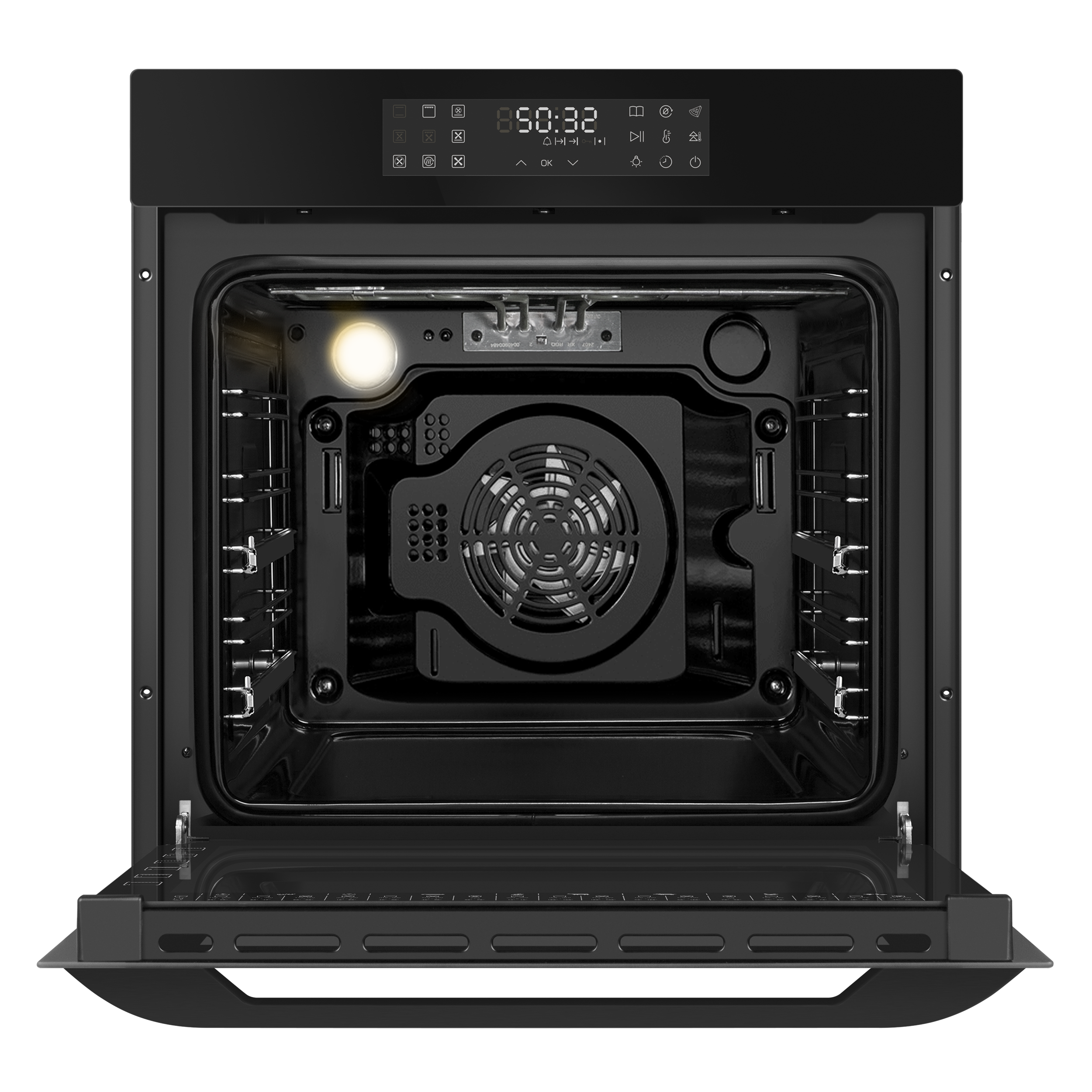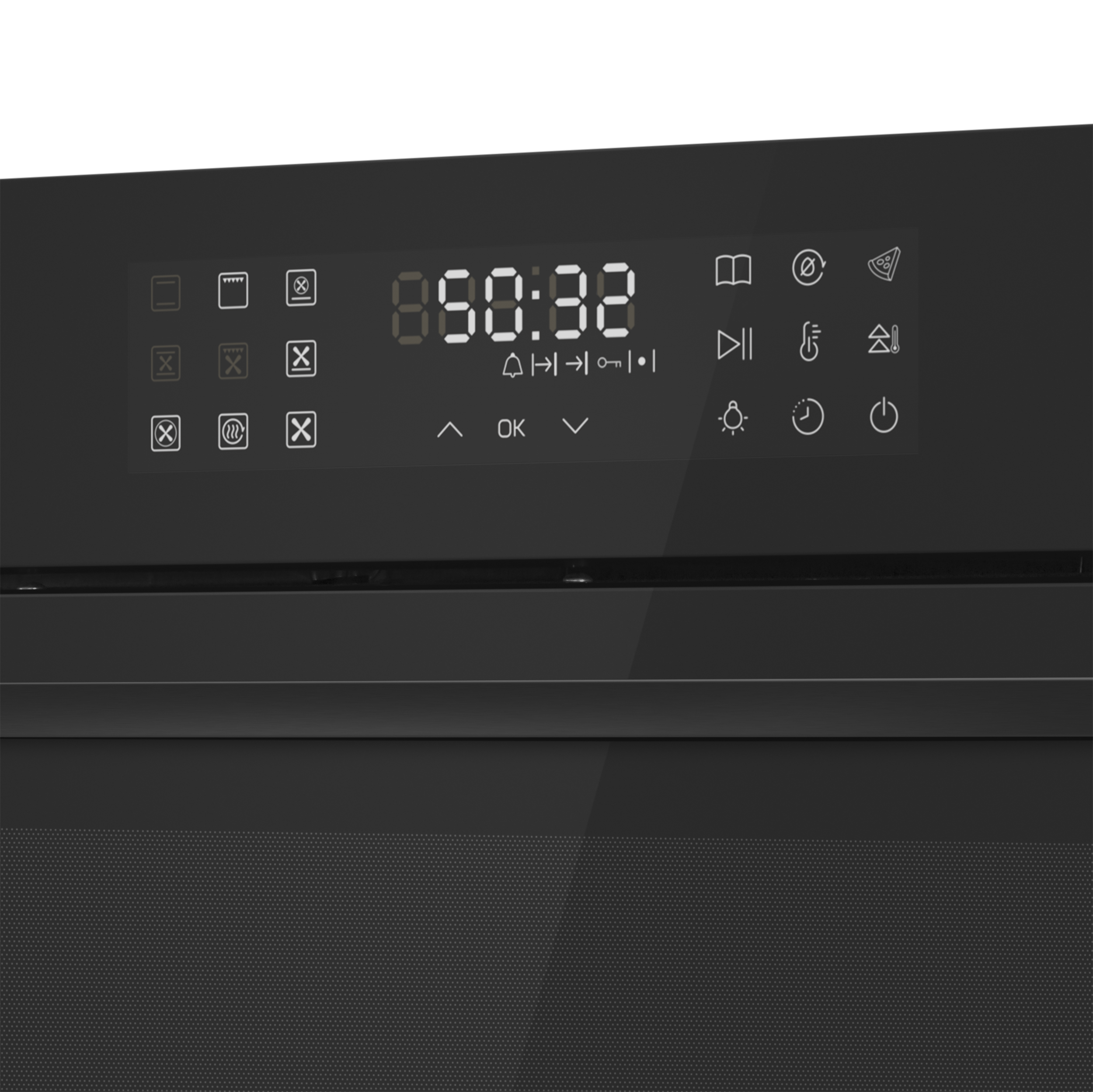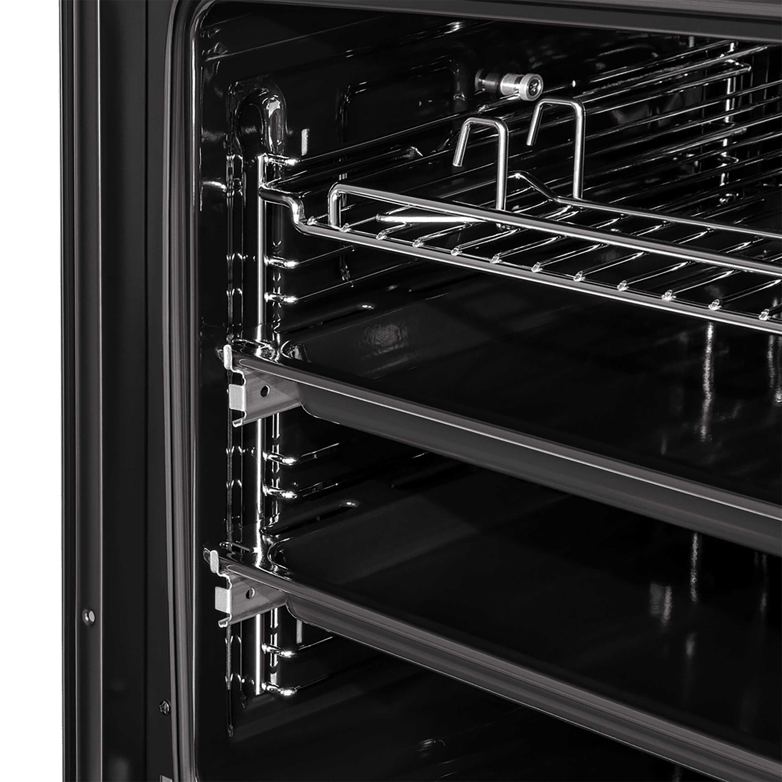 - Комплектация: противень для выпечки, глубокий противень, прихват, хромированная решетка, 5ти уровневые хромированные направляющие, телескопические направляющие