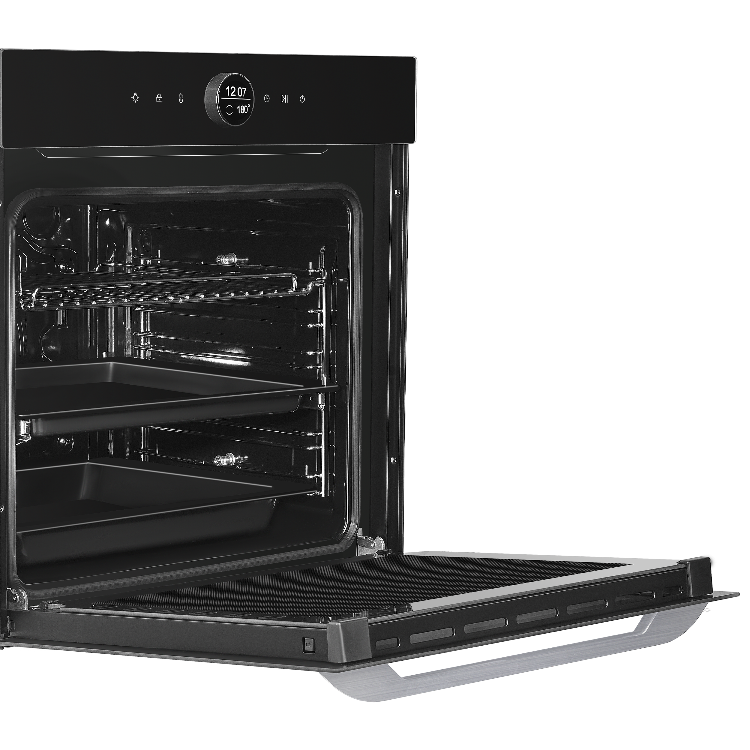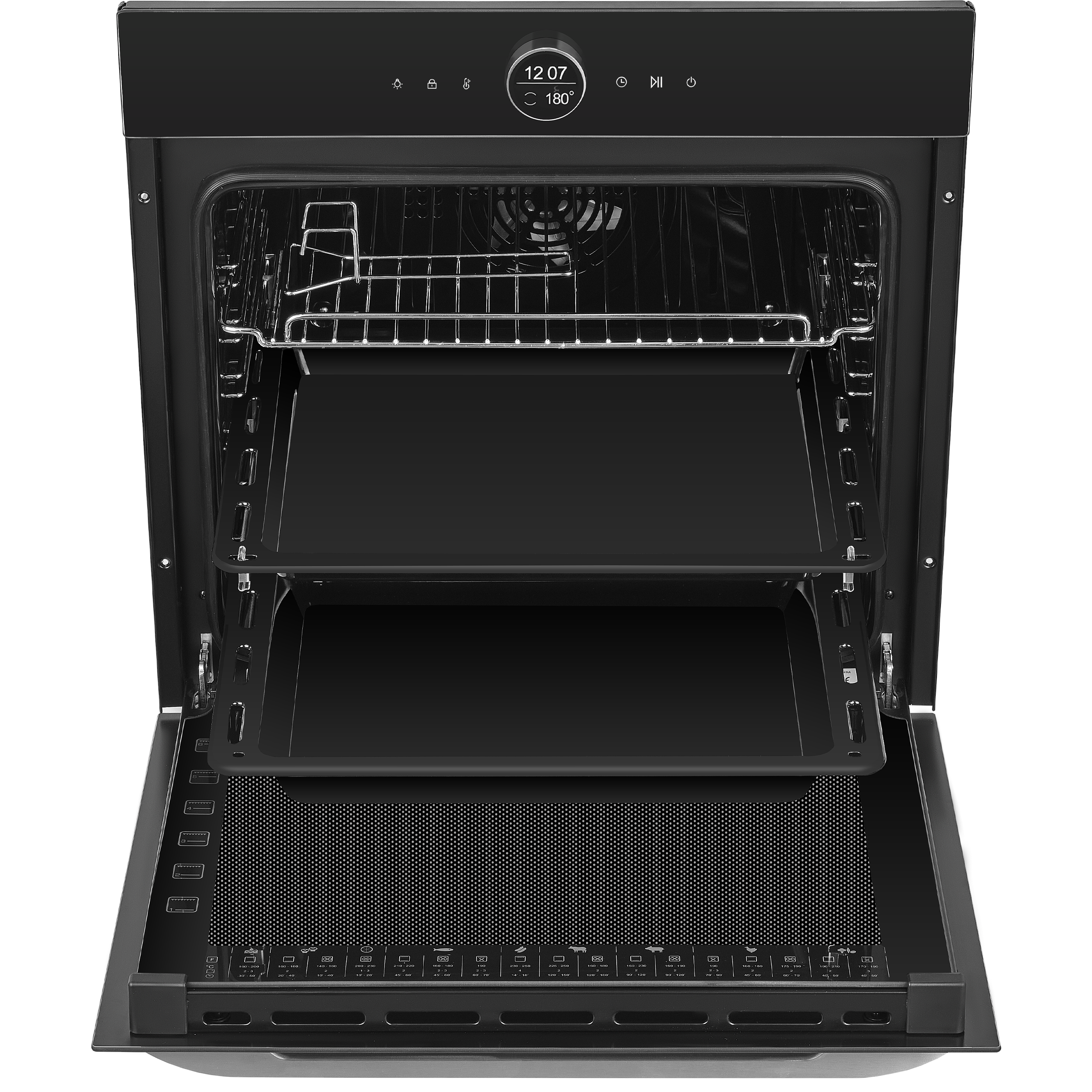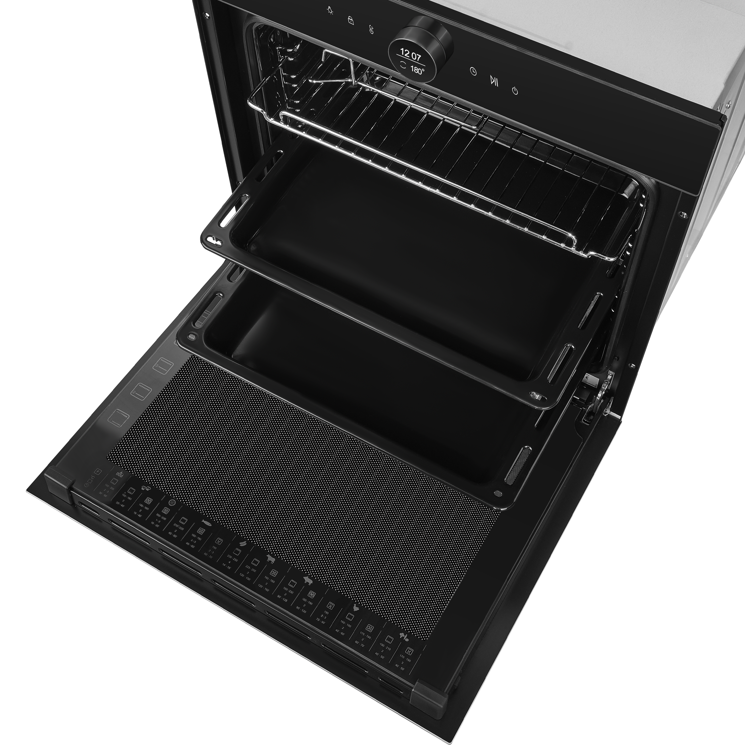 - Комплектация: противень для выпечки, глубокий противень, прихват, хромированная решетка, 5ти уровневые хромированные направляющие, телескопические направляющие