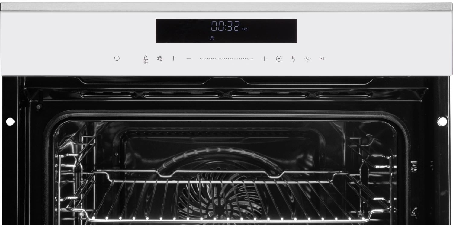 - Модель шириной 59,5 см выполнена в современном стиле. Стеклянный фасад белого цвета добавляет технике изысканности. Дверца духового шкафа оснащена тройным съемным стеклом. Это позволяет легко разобрать дверцу и тщательно очищать каждое стекло по отдельности. Внутреннее покрытие духового шкафа — эмаль легкой очистки. Она защищает внутреннюю часть духовки от коррозии металла, отталкивает жир и влагу, что способствует максимальному упрощению процесса уборки камеры. Лампа подсветки мощностью 25 Вт обеспечит хорошую видимость в процессе готовки, а вентилятор охлаждения предотвратит перегрев устройства.