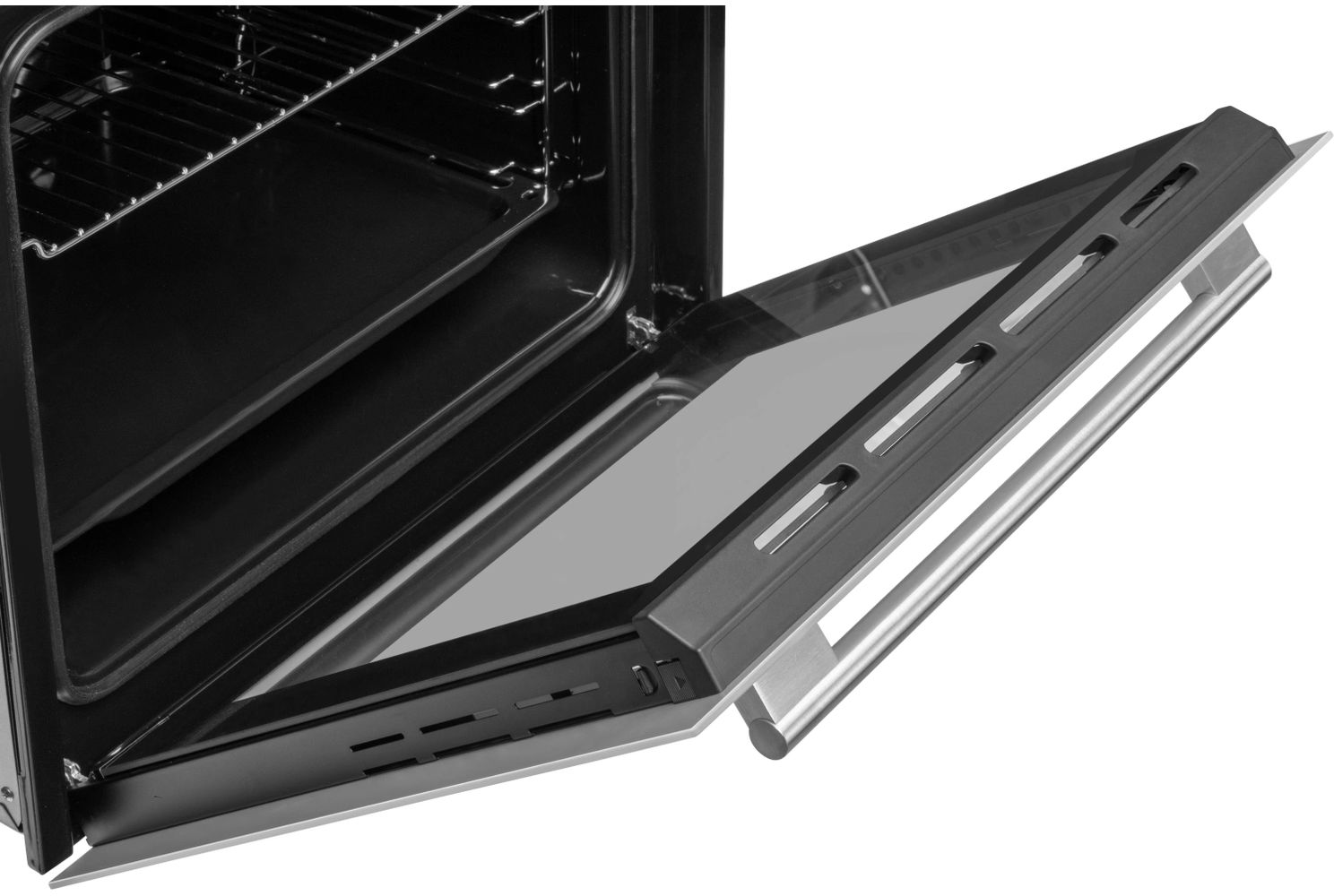 - Духовой шкаф имеет внутренний объем 74 литров и высокую мощность нагрева до 3440 Вт. Конвекционный вентилятор обеспечивает постоянную циркуляцию горячего воздуха по всей камере, поэтому блюда из мяса и овощи получаются сочными, нежными, с хрустящей корочкой. Диапазон рабочих температур модели составляет 25-280°С.