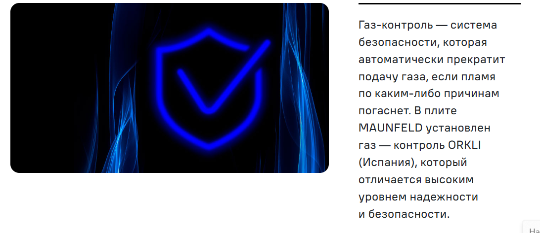 Одной из важнейших функций газовой плиты является система газ-контроль. Данная система автоматически прекратит подачу газа если пламя внезапно потухнет.