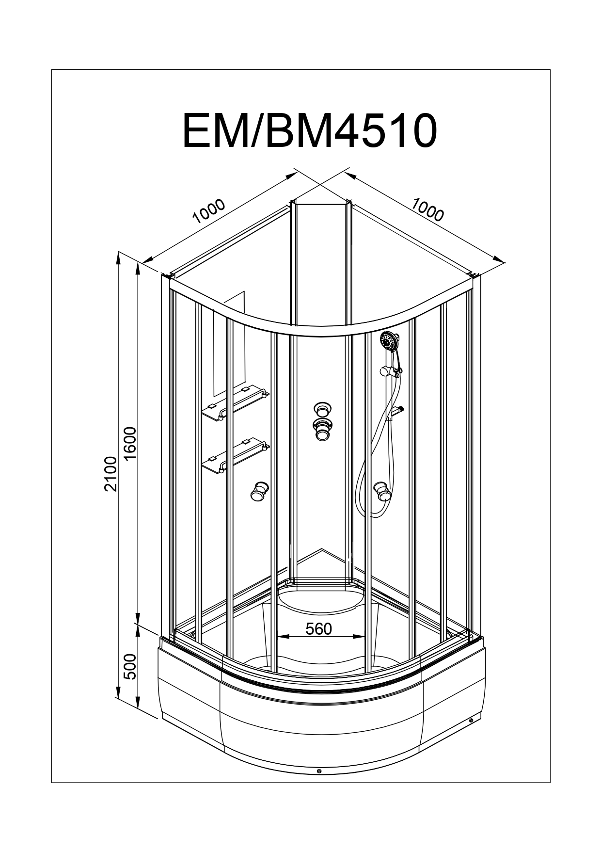 Стильная душевая кабина с внутренней сборкой AvaCan EM 4510 N с гидромассажем сочетает в себе высокую функциональность, практичность и надежность. Для изготовления применяют безопасное закаленное стекло толщиной 5 мм, надежно фиксируемое алюминиевым профилем. Цвет профиля хром. В комплекте зеркало, донный клапан (клик-клак), смеситель,переключатель режимов, полочки, гидромассажные форсунки.