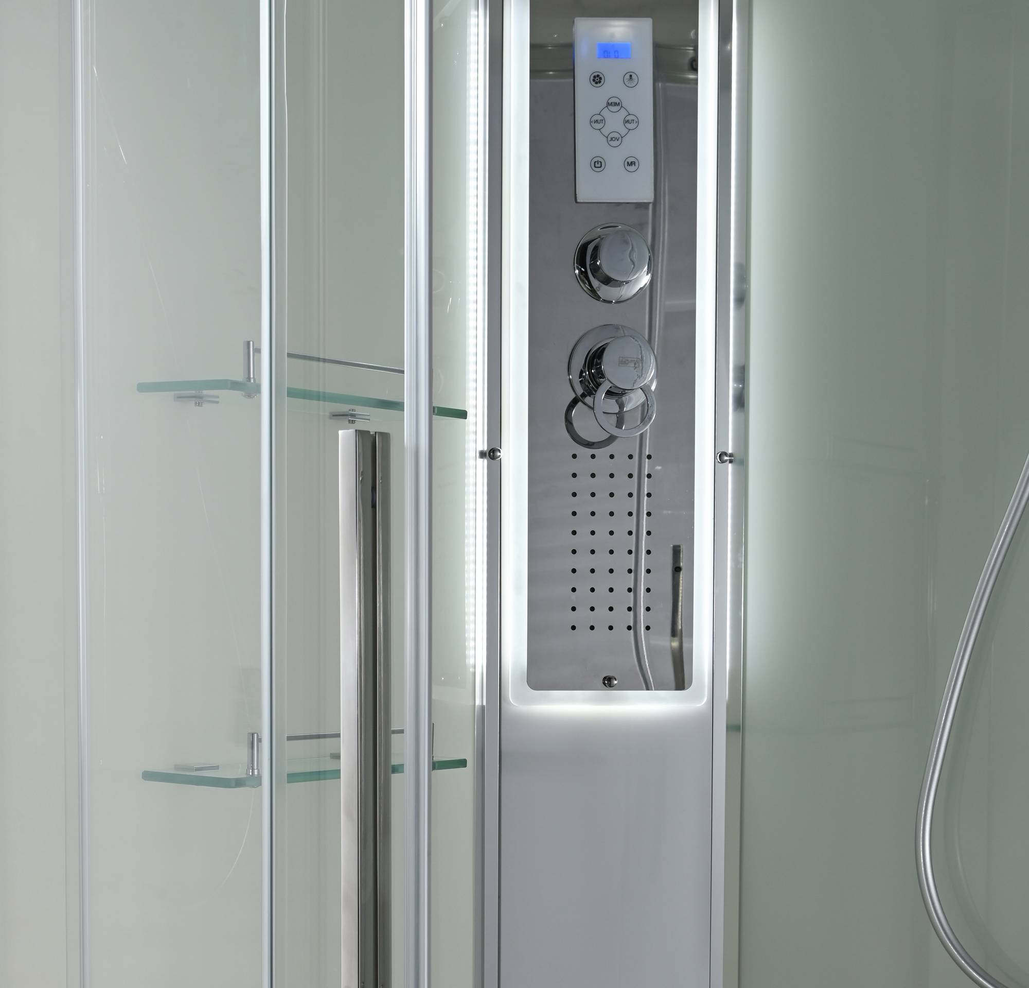 Стильная душевая кабина AvaCan EM2912LLEDT сочетает в себе высокую функциональность, практичность и надежность. При изготовлении применяется безопасное закаленное стекло толщиной 5 мм (прозрачное), надежно фиксируемое алюминиевым профилем. Сборка без силикона (увеличивает срок службы), внутренняя сборка(облегчает установку и ревизию; позволяет установить в ограниченном пространстве), смеситель резьбовой (без хомутов). Съемный экран поддона (позволяет осуществлять ревизию сифона). Цвет профиля хром. Двойные металлические ролики дверей (увеличивают срок службы).В комплекте : душевая штанга, две полочки , тропический (верхний) душ, арома-лейка с витамином С (картридж съемный),полимерная вставка в поддон(имитация дерева),сифон, ручки дверей из нержавейки , двойные ролики ,пульт сенсорный(Блютуз ,LED подсветка ,радио ,вытяжка),гидромассаж спины.