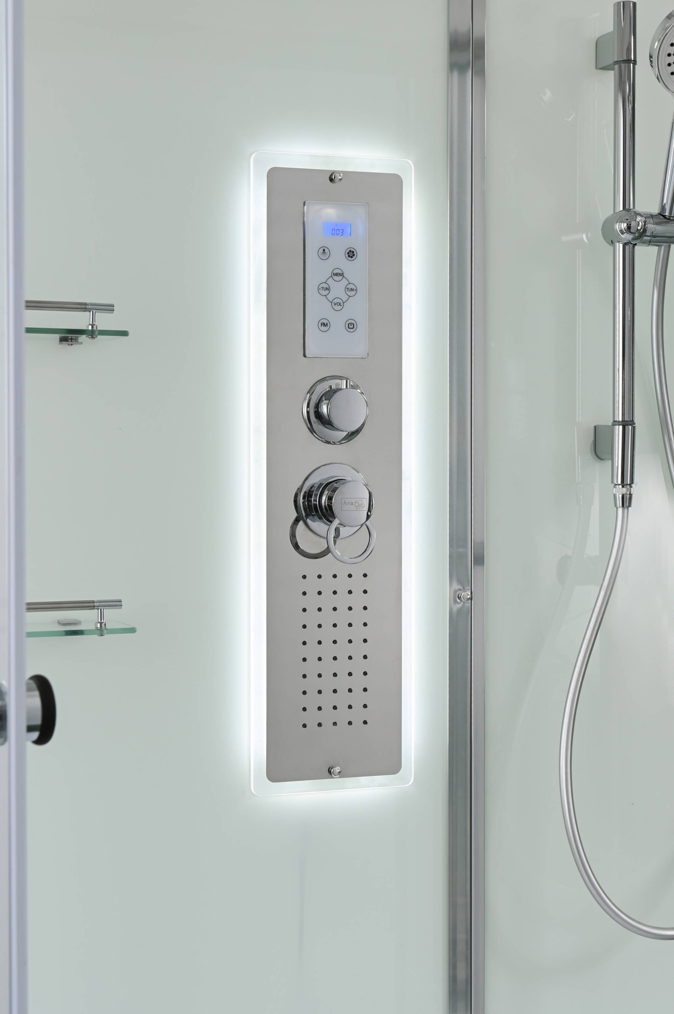 Стильная душевая кабина AvaCan сочетает в себе высокую функциональность, практичность и надежность. При изготовлении применяется безопасное закаленное стекло, надежно фиксируемое алюминиевым профилем.Профиль сделан из алюминия повышенной прочности. Сборка без силикона (увеличивает срок службы, защищает от протечек), внутренняя сборка (облегчает установку и ревизию; позволяет установить в ограниченном пространстве и обойтись без демонтажа других сантехнических приборов), смеситель резьбовой (без хомутов). Съемный экран поддона (позволяет осуществлять подключение и ревизию сифона).Двойные металлические ролики дверей (распределение нагрузки на два ролика, увеличивают срок службы). Душевая штанга(позволяет регулировать по высоте ручную лейку), ручная арома-лейка с витамином С (картридж в комплекте,есть возможность замены или удаления картриджа), полочки(из стекла, с ограничителем), сифон с гидрозатвором, сенсорный пульт управления с функциями: блютуз, LED подсветка, радио, вытяжка, гидромассаж спины, тропический (верхний) душ.