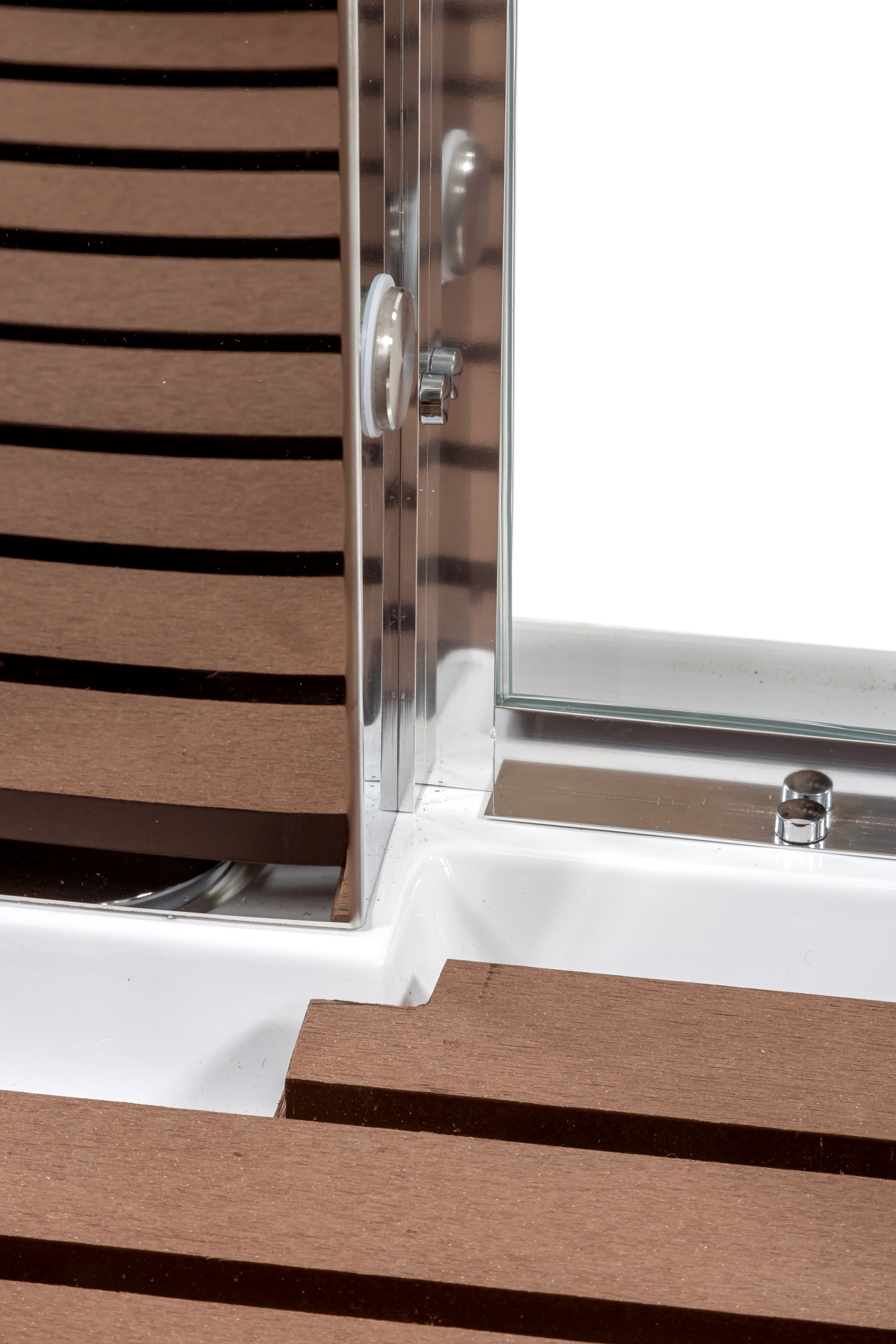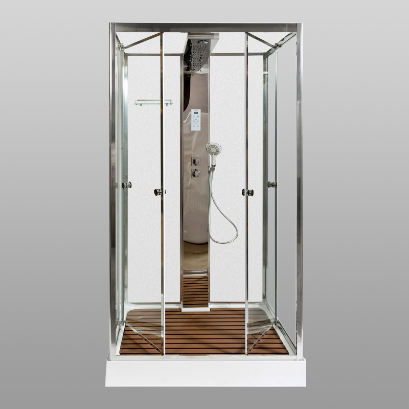 Стильная душевая кабина с внутренней сборкой AvaCan Z122 Espoo сочетает в себе высокую функциональность, практичность и надежность. Для изготовления применяют безопасное закаленное стекло толщиной 6 мм, надежно фиксируемое алюминиевым профилем. Цвет профиля хром. В комплекте душевой гарнитур, тропический (верхний) душ, гидромассажные форсунки, деревянная вставка в поддон.
