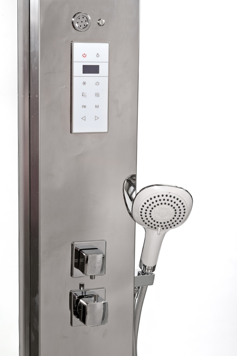 Стильная душевая кабина с внутренней сборкой AvaCan Z122 Espoo с баней сочетает в себе высокую функциональность, практичность и надежность. Для изготовления применяют безопасное закаленное стекло толщиной 6 мм, надежно фиксируемое алюминиевым профилем. Цвет профиля хром. В комплекте душевой гарнитур, тропический (верхний) душ, гидромассажные форсунки, деревянная вставка в поддон.