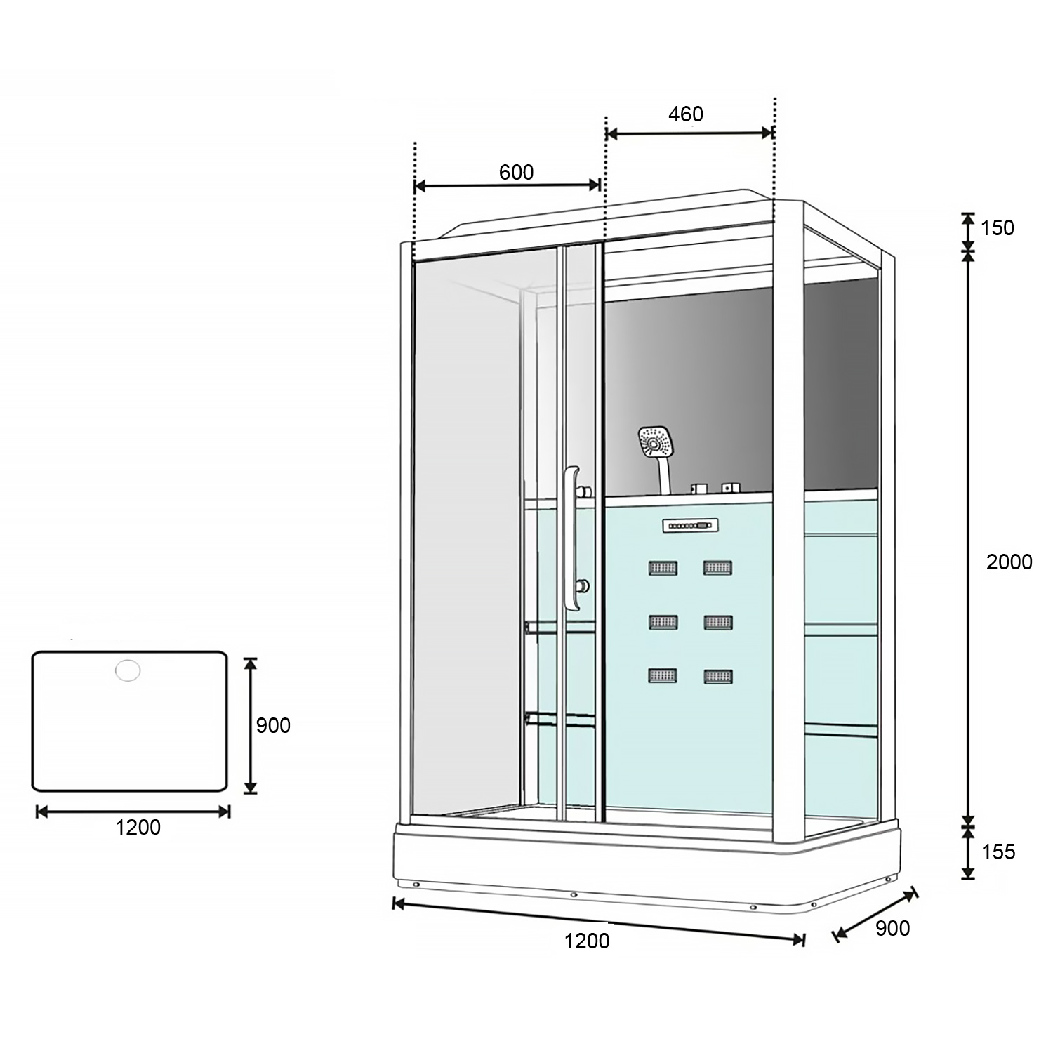 Гидробокс LORANTO CS 127-3A 120х90 L, хром/прозрачное