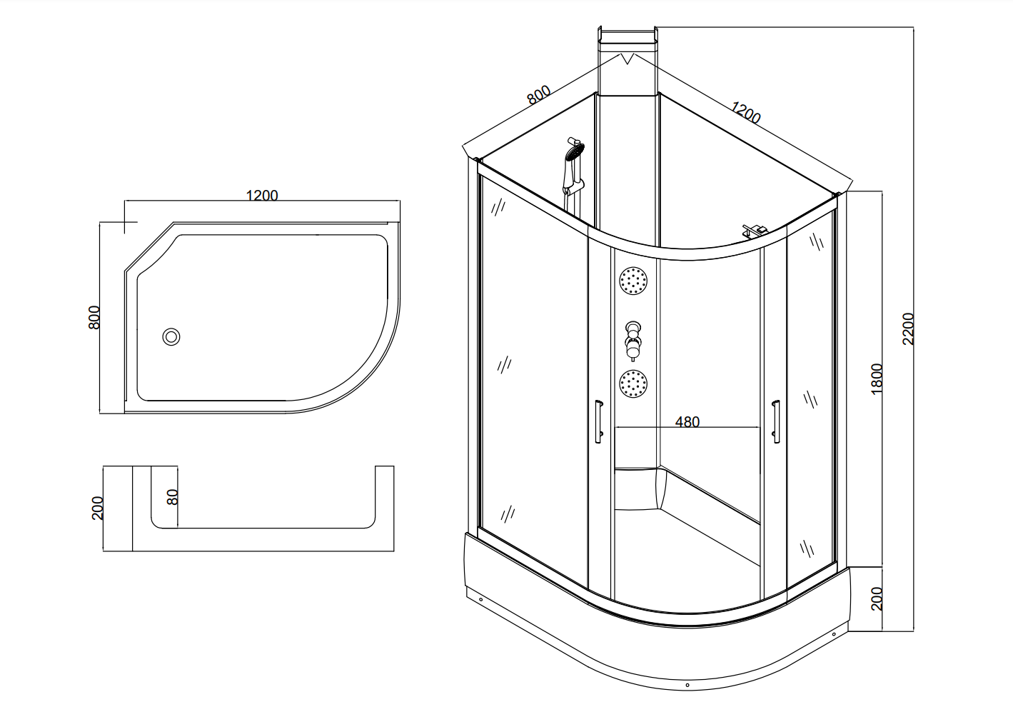 Гидробокс Taliente TA-128CB(L), высота поддона - 20 см, профиль - чёрный, стекло - прозрачное 5 мм.