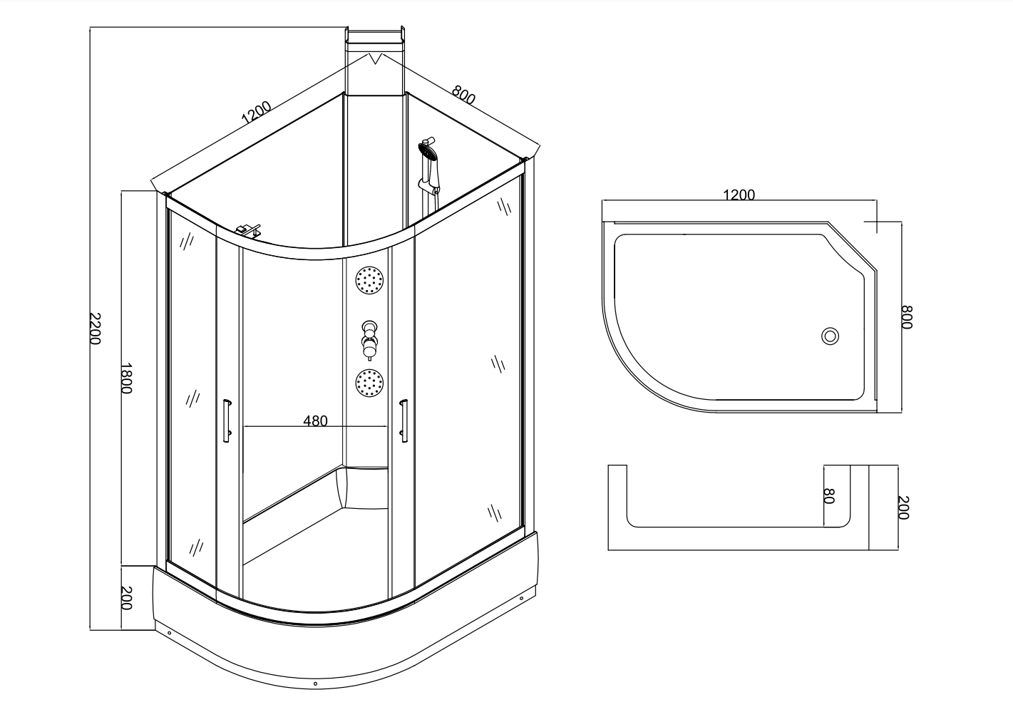Гидробокс Taliente TA-128CB(R), высота поддона - 20 см, профиль - чёрный, стекло - прозрачное 5 мм.