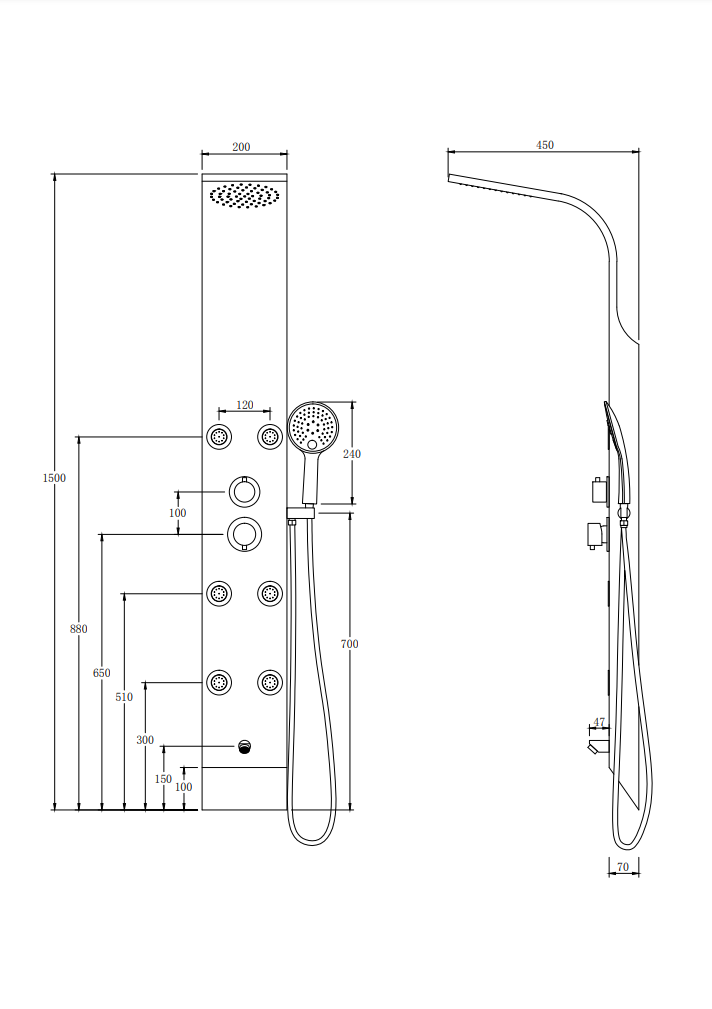 Характеристики гидромассажная панель с изливом Taliente (TA-G-A02Wcr+s)