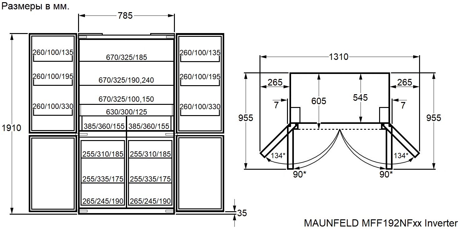 Холодильник Side by Side с инвертором Maunfeld MFF192NFB Inverter