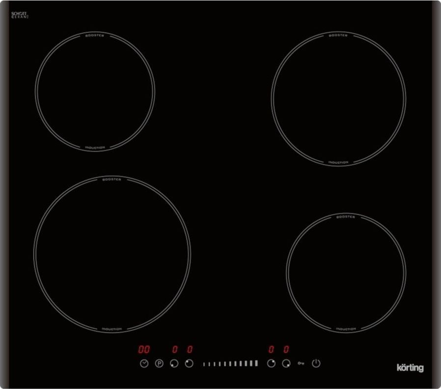 - Индикация остаточного тепла - Световой индикатор у варочных поверхностях Körting горит, пока температура конфорки не понизится до 60°С. Кроме безопасности использования, по световому индикатору можно понять, достаточно ли остыла варка для последующей чистки или нет.