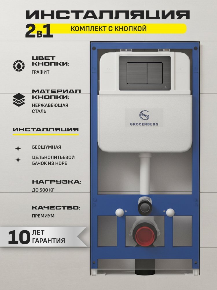 - Стильный и современный дизайн в цвете «графит» придаст вашей ванной комнате изысканный вид. Инсталляция Grocenberg создана для тех, кто ценит надёжность и качество.
