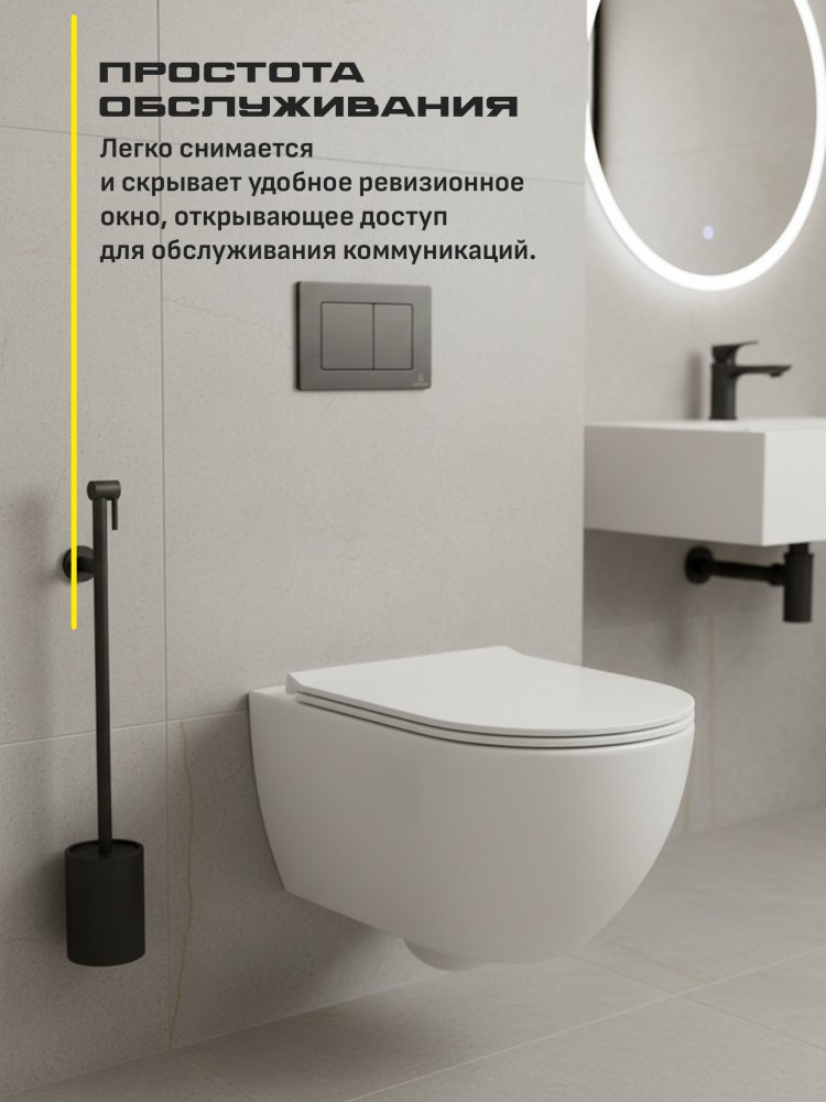 - Благодаря продуманной конструкции и качественным материалам, инсталляция обеспечивает плавный и эффективный смыв. Кнопка для смыва удобна в использовании и добавляет комфорт в повседневную рутину.