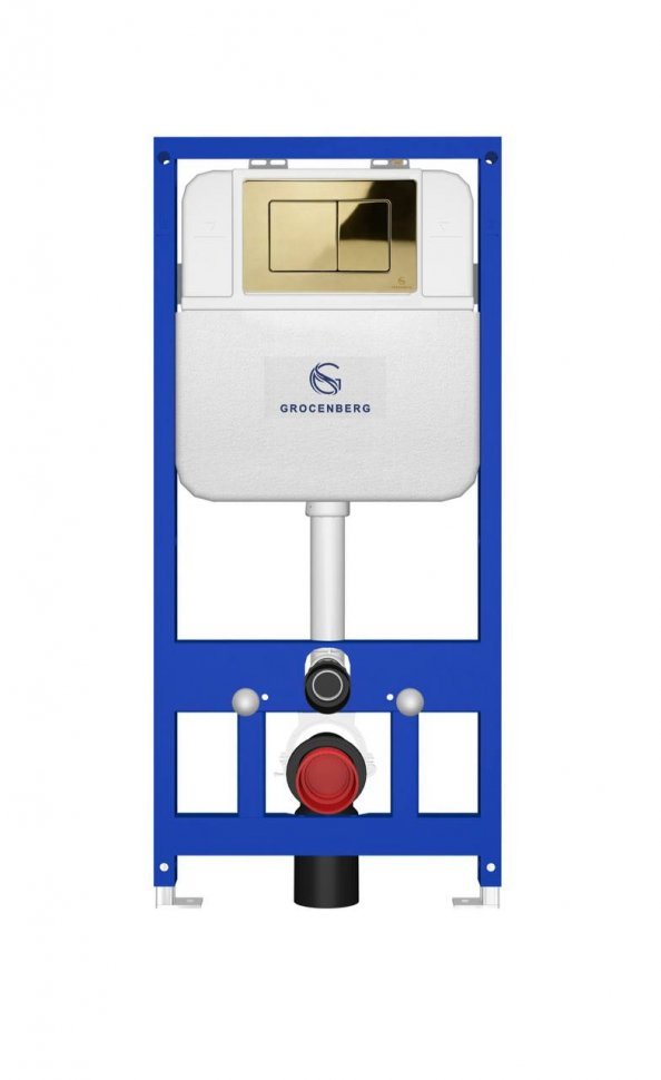 Инсталляция для унитаза Grocenberg GS3050-KM3080GO с металлической рамой, двойной системой слива 3/6 литров. Кнопка смыва золото.