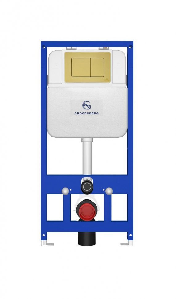Инсталляция для унитаза Grocenberg GS3050-KM3080MG с металлической рамой, двойной системой слива 3/6 литров. Кнопка смыва золото матовое.