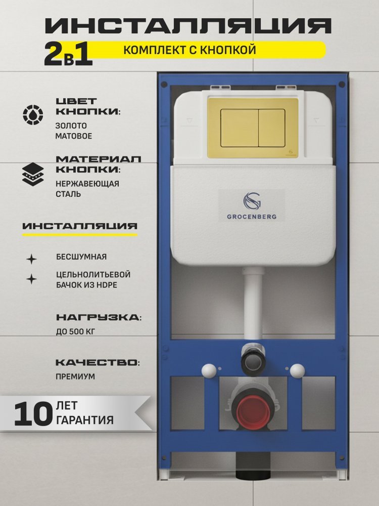 - Откройте для себя мир роскошного и изысканного дизайна с инсталляцией для унитаза Grocenberg GS3050-KM3080MG в цвете матового золота! Этот унитаз — не просто сантехника, это настоящее произведение искусства, которое преобразит вашу ванную комнату и сделает её по-настоящему уникальной.