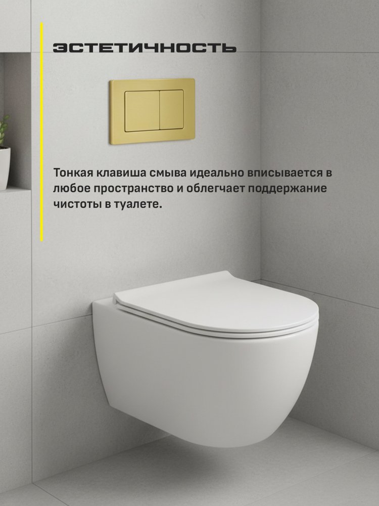 Инсталляция для подвесного унитаза Grocenberg GS3050-KM3080MG с кнопкой смыва золото матовое