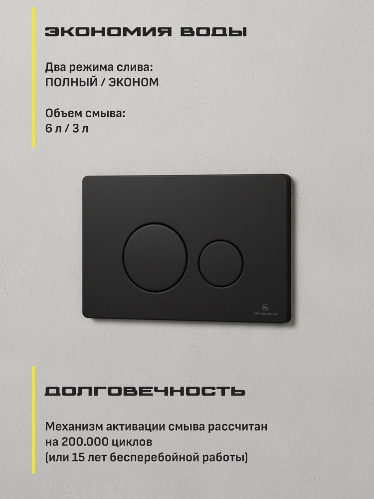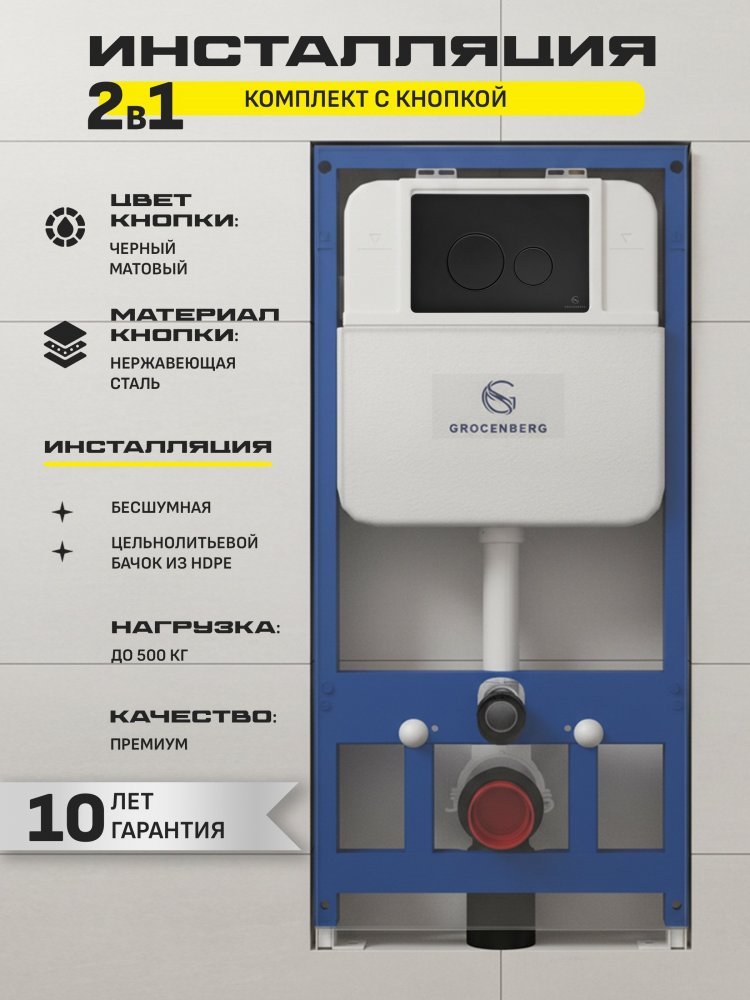 - Удобная кнопка для смыва гарантирует лёгкость использования. Инсталляция Grocenberg GS3050-KM3090BL — это не просто сантехника, это воплощение стиля и комфорта в вашем доме.