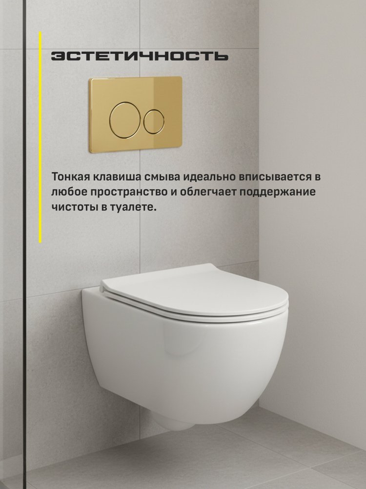 - Grocenberg GS3050-KM3090GO — это не только красота, но и функциональность. Плавный и надёжный механизм кнопки для смыва обеспечивает комфортное использование, а качественная конструкция гарантирует долговечность.