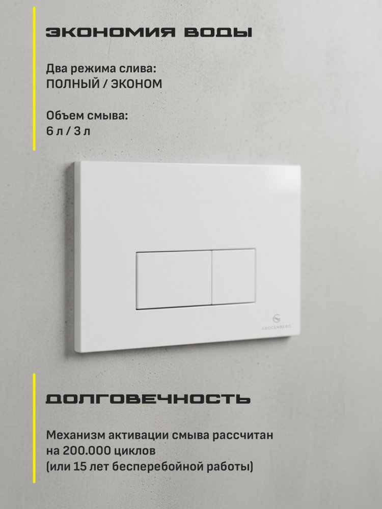- Выбирая инсталляцию Grocenberg, вы инвестируете в качество и удобство. Эта модель — идеальное решение для тех, кто ценит стиль, функциональность и практичность. Преобразите свою ванную комнату с инсталляцией Grocenberg GS3050-KP3070W и наслаждайтесь каждым мгновением в ней!