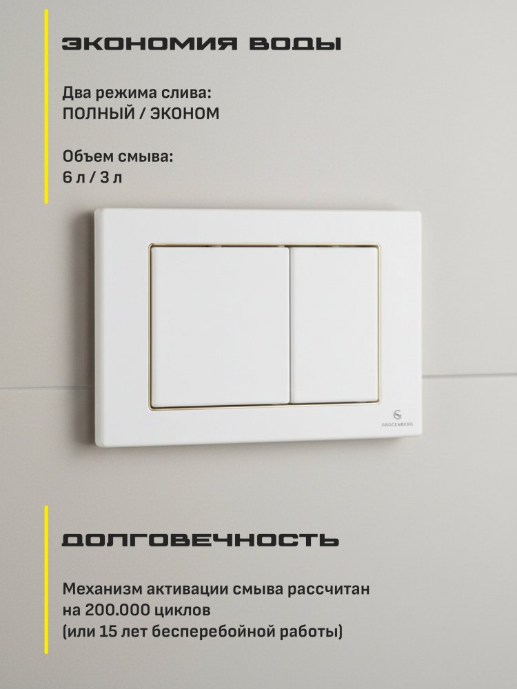 - Позвольте себе наслаждаться каждым моментом в ванной комнате с инсталляцией Grocenberg GS3050-KP3080W. Ваш выбор — это не просто сантехника, это инвестиция в комфорт и стиль вашего дома!